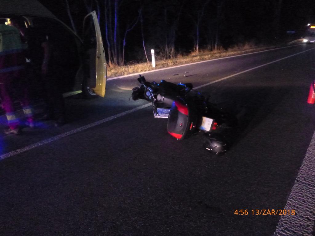Broumovští profesionální hasiči zasahovali ráno u dopravní nehody osobního vozu a motocyklu. Hasiči pomohli s poskytnutím první předlékařské pomoci zraněné osobě z motorky a následně pomohli také s transportem do sanitního vozu. Po úklidu komunikace ukončila jednotka svůj zásah a vrátila se zpět na stanici.