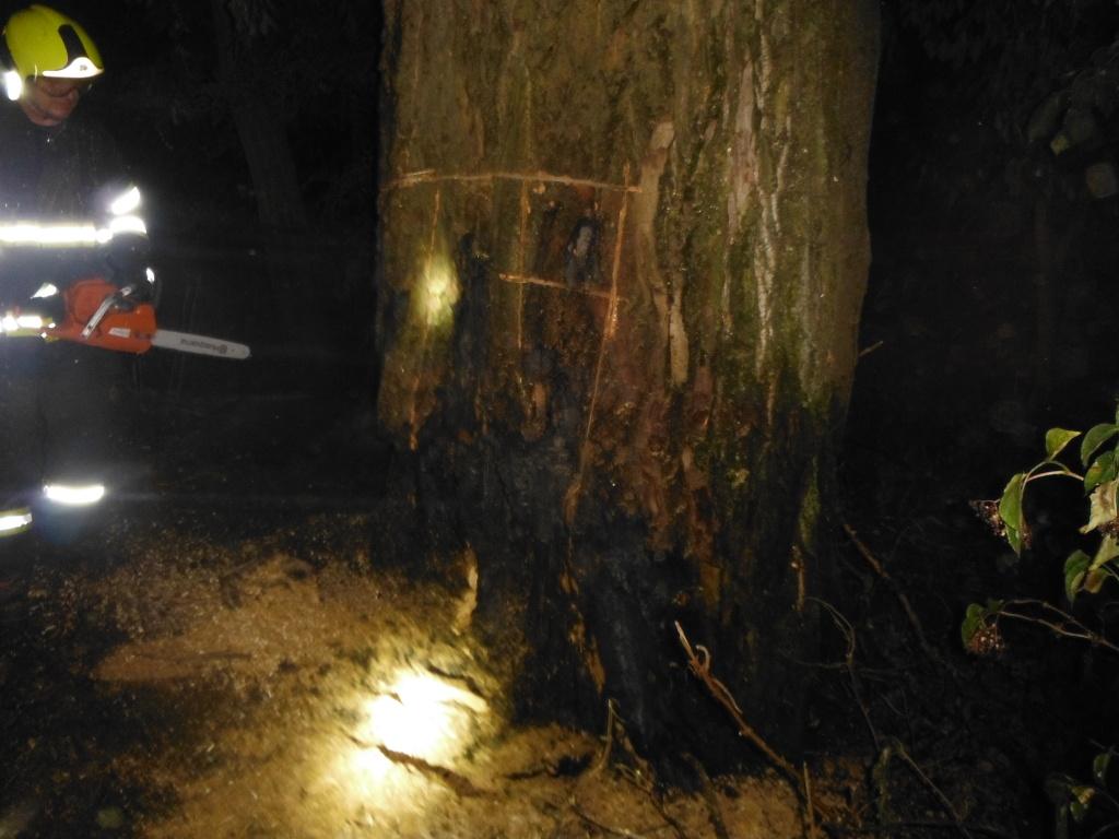 Profesionální jednotka z Hořic a dobrovolná jednotka ze Sovětic likvidovaly požár, který vznikl v dutině stromu. Oheň jednotky uhasily, ale bylo potřeba strom pokácet. Byl velmi mohutný, proto jej hasiči rozřezali jen částečně a v práci budou pokračovat za denního světla.
