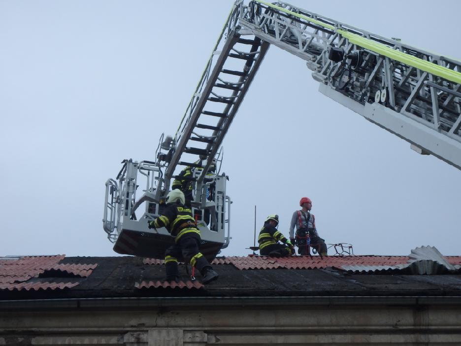 Následkem silných poryvů větru došlo v Mladých Bukách k poškození střechy na skladovací hale. Vítr shodil část plechů dolů a část hrozila pádem. Na místo vyjeli profesionální hasiči z Trutnova, vybaveni automobilovým žebříkem pro zásah ve výšce. Hasičům se podařilo na poškozené střešní konstrukci odstranit uvolněnou krytinu, zbylé části zabezpečili. Místo poté předali zástupci majitele objektu.