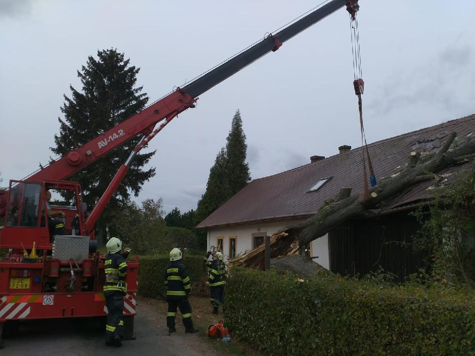 V katastru části Podlevín došlo kvůli silnému větru k pádu stromu na dům. Na místo vyjeli profesionální hasiči z Nové Paky a Jičína, vybaveni výškovou technikou i vyprošťovacím automobilem. Stromu nejprve ořezali větve z automobilového žebříku a poté pomalu stáhli kmen dolů. Strom po sobě zanechal poškozenou střešní konstrukci.