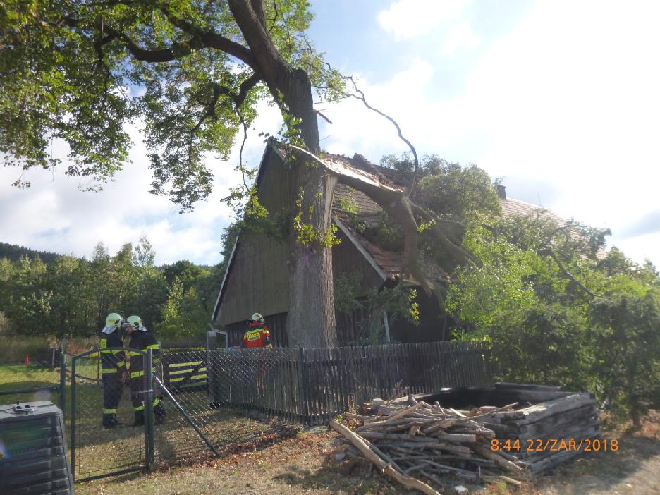 V části Vižňov spadl při větrném poryvu kus stromu na střechu rodinného domu. K odstranění lípy byli povoláni profesionální hasiči z Broumova i z Náchoda a dobrovolná jednotka z Meziměstí. Ulomená část stromu zůstala ležet na poškozené střešní konstrukci. Profesionální jednotky přijely na místo s výškovou technikou i vyprošťovacím automobilem. Strom se jim podařilo zlikvidovat.