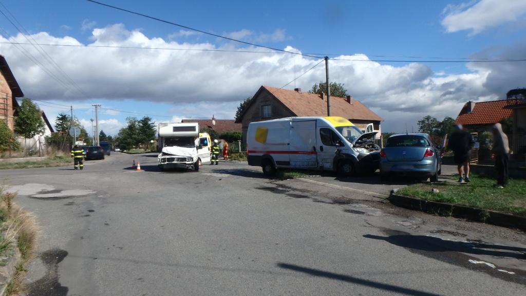 K nehodě osobního automobilu a dodávky vyjížděli profesionální hasiči z Jaroměře. Při nehodě nebyl nikdo zraněn, došlo ale k úniku provozních náplní. Hasiči je zasypali sorpčním materiálem a zajistili celkový úklid vozovky.