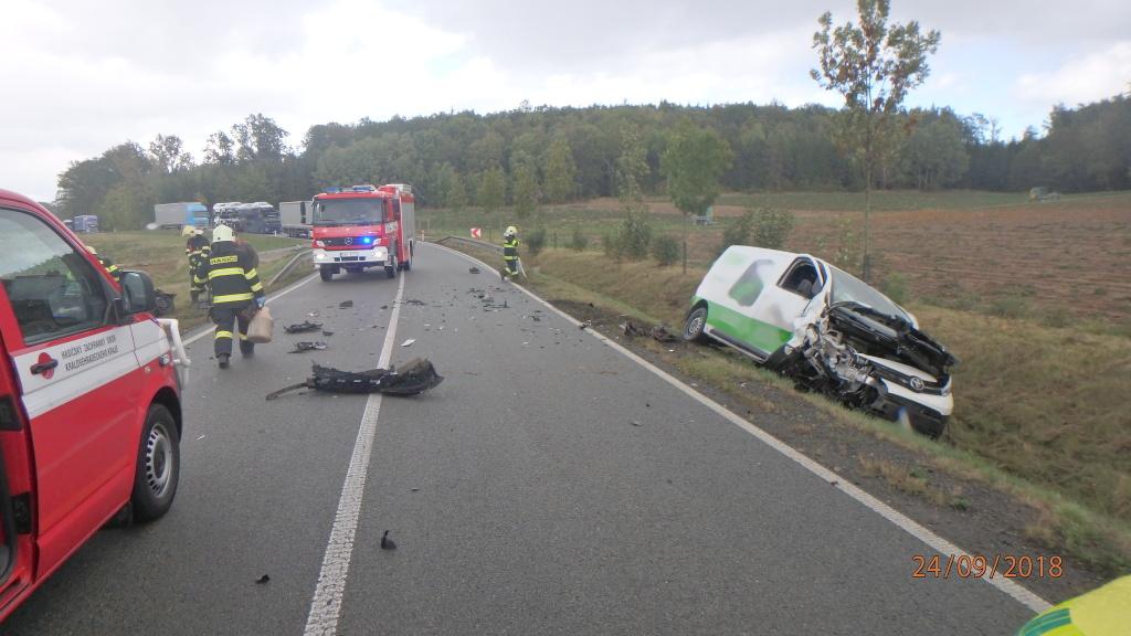 V katastru části Domašín havarovalo osobní vozidlo a dodávka. Na místo vyrazili profesionální hasiči z Rychnova nad Kněžnou a dobrovolná jednotka ze Solnice. Obě vozidla skončila po kolizi mimo vozovku. Hasiči odpojili u havarovaných automobilů akumulátory a místo události zajistili. O jednu zraněnou osobu se postarali záchranáři a transportovali ji do zdravotnického zařízení. Hasiči řídili v místě nehody provoz kyvadlově a na závěr vozovku uklidili. Místo události si převzali policisté.