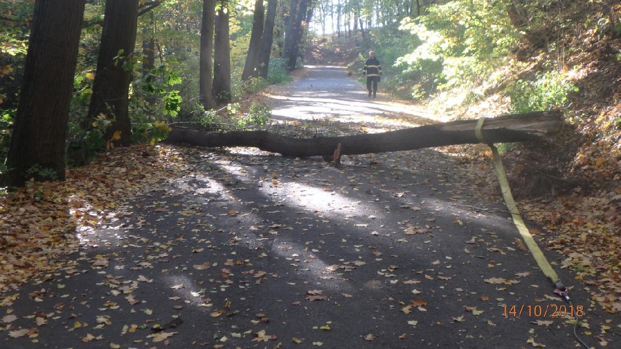 Vrchlabští profesionální hasiči a místní dobrovolní hasiči odstranili v neděli odpoledne spadlý strom z komunikace.