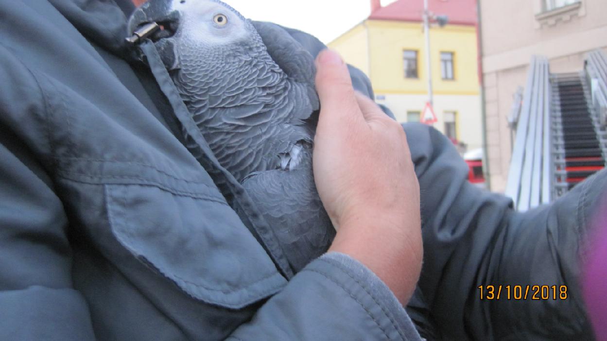 Profesionální hasiči Dobrušky a místní dobrovolní hasiči ve spolupráci s majitelkou odchytili v sobotu odpoledne papouška Žako, který se nacházel na stromě na stromě ve výšce několika metrů.