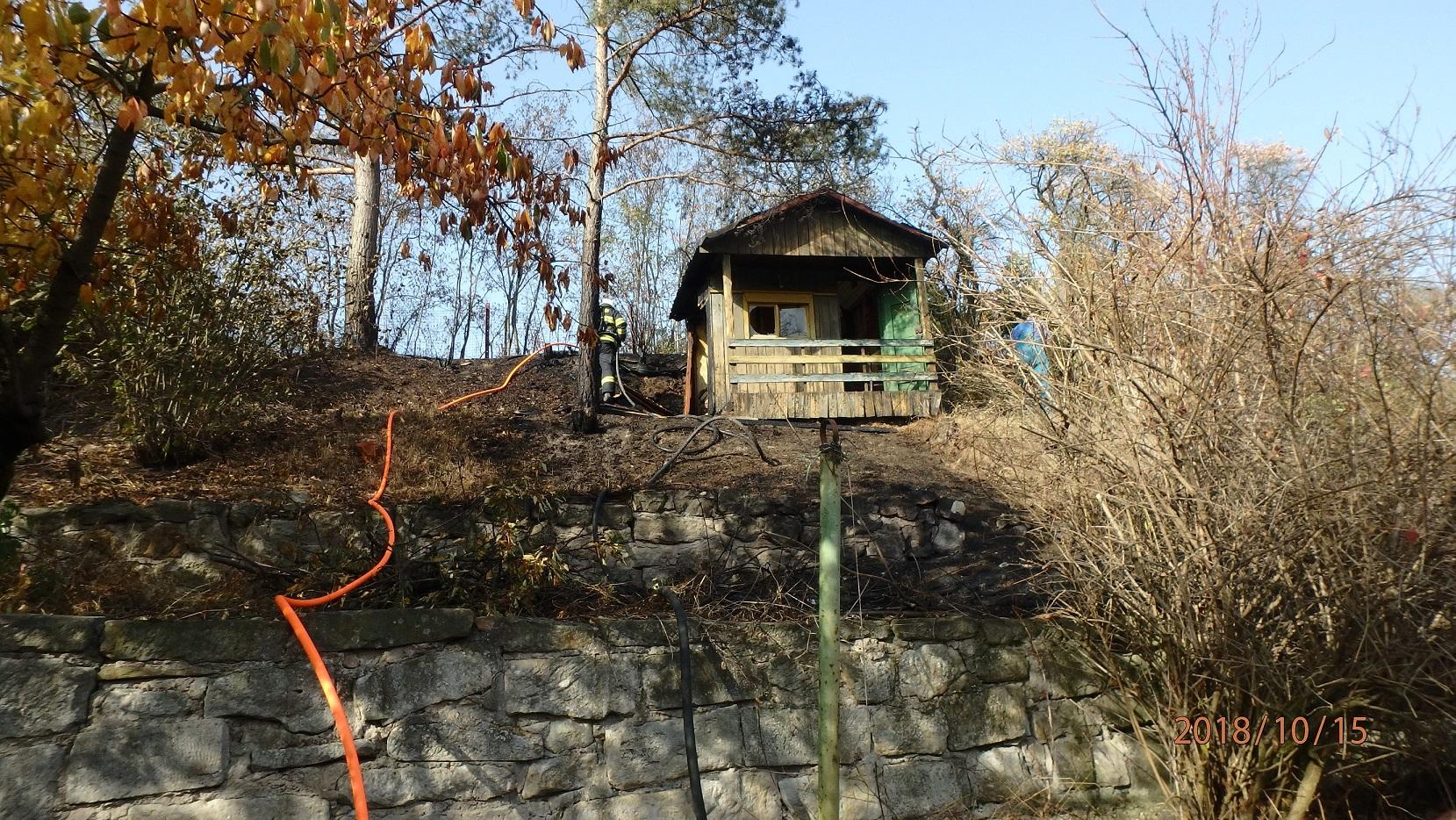 Jaroměřští profesionální s dobrovolní hasiči byli přivoláni do ulice Hradecká k požáru travního porostu. Majitel požár hasil vodou ze zahradní hadice. Od trávy začal hořet zahradní domek, který byl ihned uhašen.