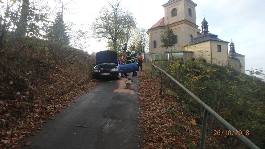 Na silničním úseku u kostela Na Homoli havaroval osobní automobil, který se po nehodě převrátil na bok. Osoba ve voze se nemohla dostat ven. Na místo vyjeli profesionální hasiči z Rychnova nad Kněžnou. Osoba, která vůz řídila, byla už po příjezdu jednotky mimo havarovaný vůz, ven jí pomohli svědci události. Hasiči provedli protipožární opatření a následně zajistili úklid komunikace.