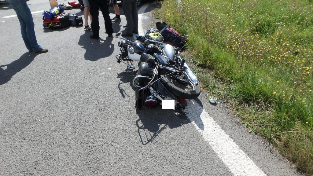 Profesionální hasiči z Jaroměře a Dobrušky zasahovali v neděli odpoledne (ohlášeno 13:40) při dopravní nehodě osobního vozidla a motocyklu, která se stala v obci Spyta. Motorkář utrpěl zranění. Jednotky pomohly zdravotnické záchranné službě s jeho ošetřením. Poté byl transportován vrtulníkem do nemocnice. Hasiči uklidili komunikaci a pomohli s naložením auta na odtah. Uniklé provozní kapaliny byly zasypány sorbentem.