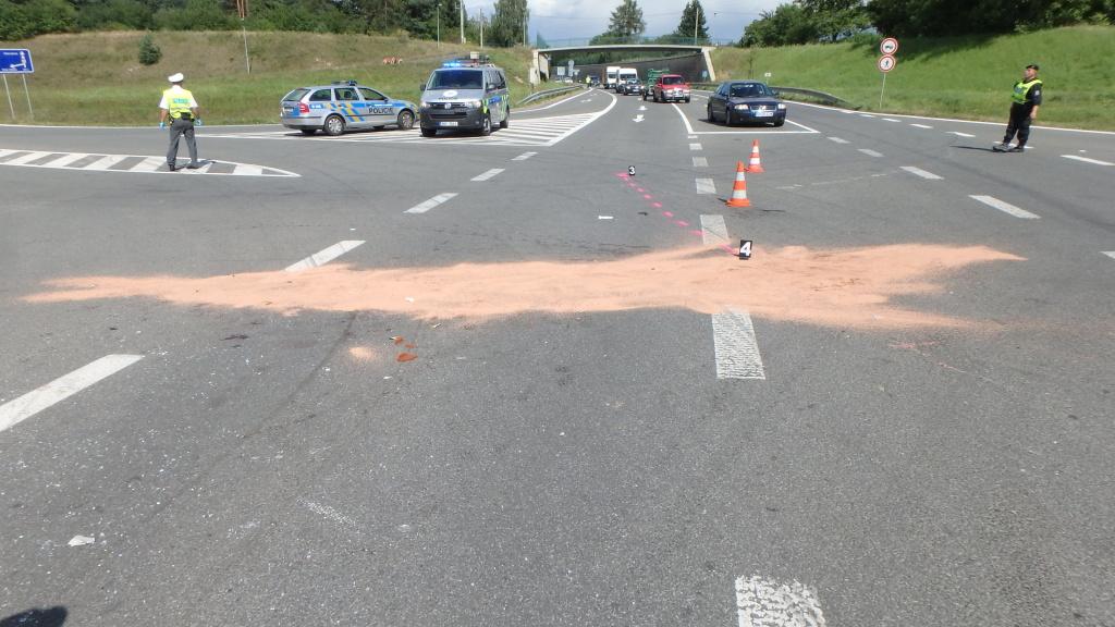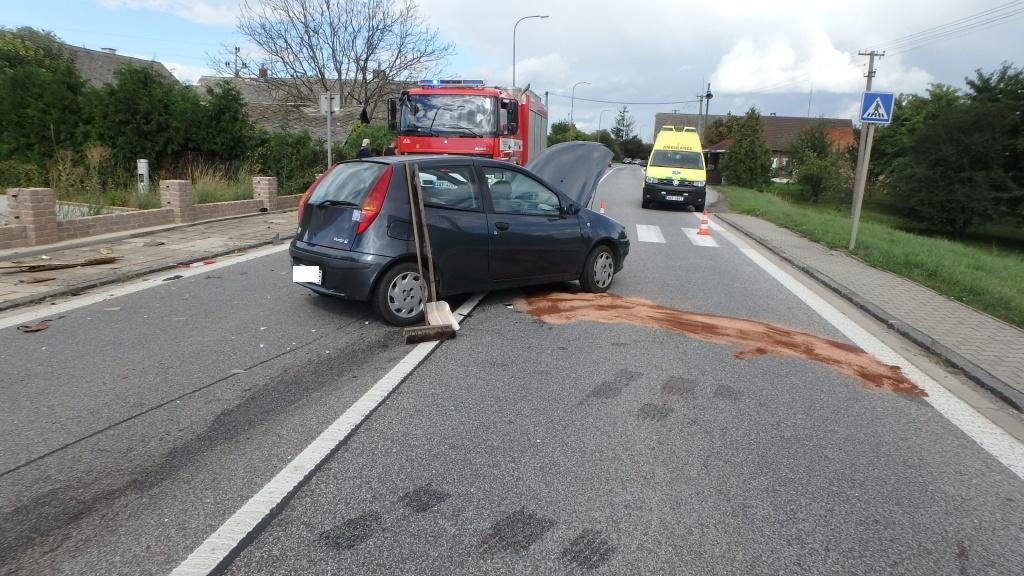 Profesionální hasiči z královéhradecké centrální stanice byli v pátek v 18:34 přivoláni ke střetu dvou osobních automobilů, který se stal v ulici Velká na Pouchově. Jedna osoba utrpěl zranění a byla odvezena zdravotnickou záchrannou službou do nemocnice. Hasiči provedli na vozidlech protipožární opatření a uniklé provozní kapaliny zlikvidovali pomocí sorbentu. Jednotka odstavila vozy mimo komunikaci.