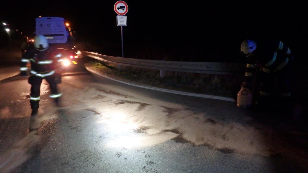 Po naložení vozidel na odtah zajistila jednotka úklid uniklých provozních kapalin. Látky zasypala sorbentem a komunikaci očistila.