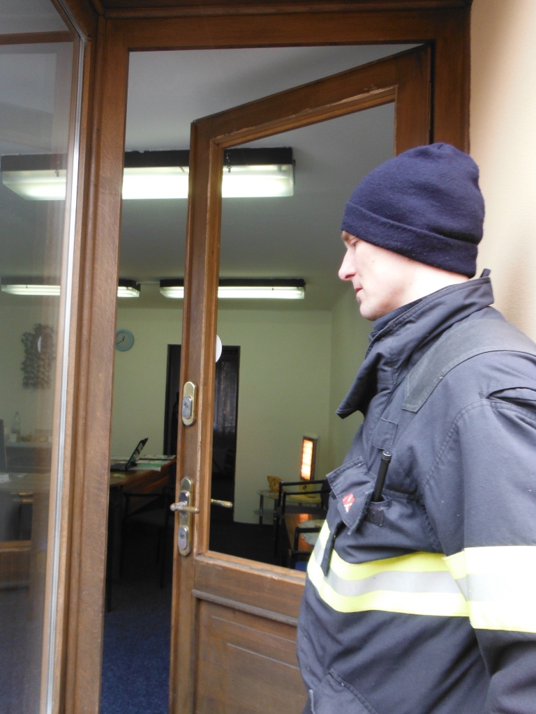 Profesionální hasiči z Hořic vyjeli krátce po poledni k otevření dveří místnosti domu v ulici Husova v Hořicích. Hasiči za asistence strážníků nejprve museli rozlištováním a demontáží skleněné výplně otevřít vstupní dveře do kanceláře v domě a poté provedli nouzové otevření dveří místnosti, ve které zůstal uvězněný muž. Po ukončení zásahu hasiči provizorně zabezpečili vstupní dveře do kanceláře vložením skleněné výplně. (foto: stanice Hořice)