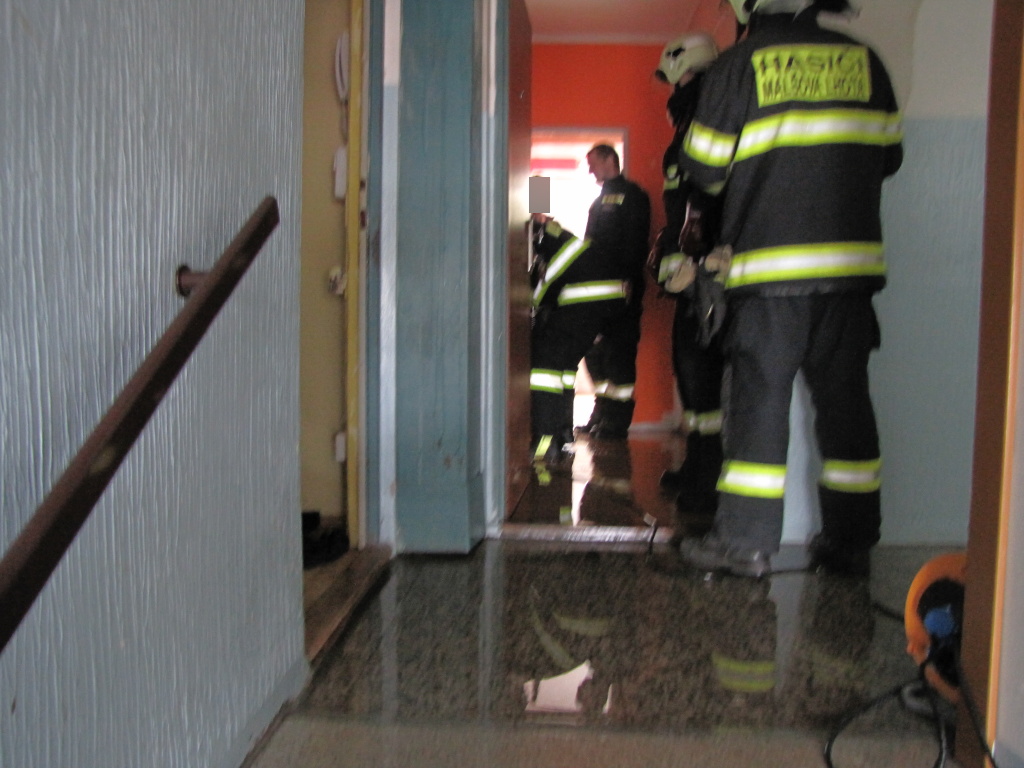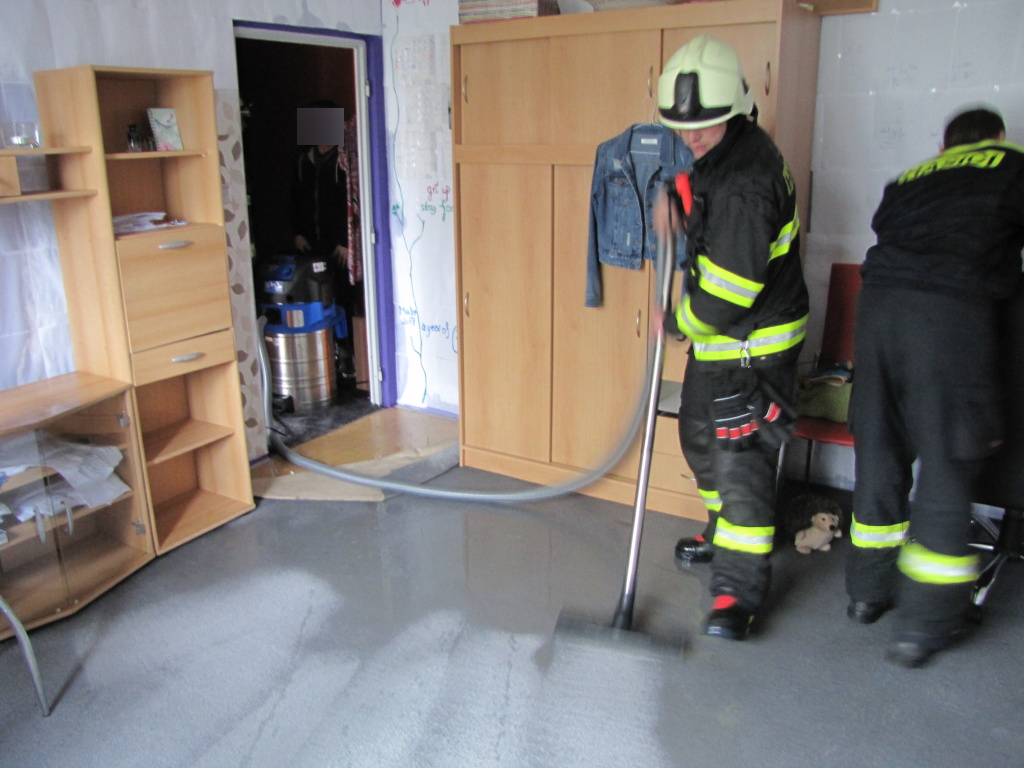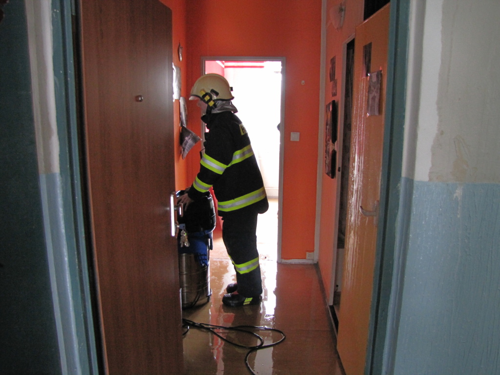 Tři jednotky hasičů vyjely včera odpoledne k čerpání vody z bytového domu ve Štefánikově ulici v Hradci Králové. Událost byla na operační středisko hasičů ohlášena ve 12:59 hodin. Na místo vyrazili profesionální hasiči z centrální stanice Hradec Králové, dobrovolní hasiči z městské části Malšova Lhota a místní části Třebeš. Ještě před příjezdem hasičů byl uzavřen hlavní přívod vody. K úniku došlo z poškozeného potrubí rozvodu teplé vody ve stoupačkám v bytě ve druhém patře. V něm se v tu dobu nikdo nenacházel. Hasiči odpojili celý vchod od přívodu elektřiny a násilným způsobem se dostali do uzamčeného bytu, kde k havárii došlo. Z bytu o patro níže a společných prostor domu hasiči pomocí speciálních vysavačů odčerpali vodu a pomohli nájemníkům s vynesením mokrých věcí. Po odčerpání vody se všechny jednotky vrátily na základny. (foto: centrální stanice Hradec Králové)