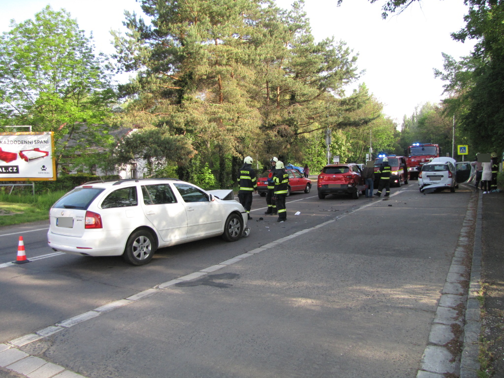 Profesionální hasiči z centrální stanice Hradec Králové vyjeli v 07:28 hodin ke střetu tří osobních vozidel ve Zborovské ulici v Hradci Králové. Při nehodě osobních aut zn. Škoda Octavia, Renault a Dacia Duster byla zraněna řidička posledního vozidla a převezena záchrannou službou do nemocnice. Ostatní řidiči a spolujezdci vyvázli bez zranění. Hasiči u dvou havarovaných aut odpojili autobaterie. Po zadokumentování události Policií ČR odstranili škodovku z jízdního pruhu a odklidili střepy a plastové části. Příčiny nehody a míru zavinění šetří Policie ČR. (foto: centrální stanice Hradec Králové)