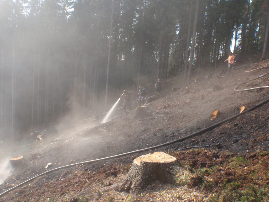 Dvanáct jednotek hasičů bojovalo v neděli dopoledne s požárem lesního porostu v nepřístupném terénu v části Ždírnice u Horní Olešnice. Událost byla na operační středisko HZS Královéhradeckého kraje ohlášena v 10:24 hodin. Na místo vyjeli profesionální hasiči z Jičína, Nové Paky, Trutnova, dále dobrovolní hasiči z Pecky, Staré Paky, Nové Paky, Bílé Třemešné, Hostinného, Mostku, Dolní Kalné, Borovnice a Horní Olešnice. V oblasti bylo hlášené několikadenní pálení klestí po těžbě, které skončilo o několik dnů dříve. I přes opakované kontroly místa zaměstnancem specializované firmy došlo kvůli nedůkladnému uhašení k šíření ohně pod povrchem ze dvou ohnisek a rozšíření do kopcovitého terénu na plochu zhruba 100 krát 100 metrů. Hasičům pomáhala při vyvážení čerpadel a dalších potřebných prostředků nejen speciální čtyřkolka dobrovolných hasičů z Hostinného, ale také vozidla specializované firmy provádějící pálení. Hasiči museli v nepřístupném terénu pro těžkou techniku vytvořit dopravní vedení z hadic. Na pomoc povolali hasicí letadlo a později také vrtulník Letecké služby Brno s bambi vakem. Ten provedl celkem sedm shozů na ohniska požáru. Požár se podařilo lokalizovat v 16:10 hodin a uhasit v 17:48 hodin. Požárem došlo k poškození zhruba 30 vzrostlých stromů. Hmotná škoda nebyla prozatím vyčíslena. (foto: stanice Nová Paka a Trutnov)