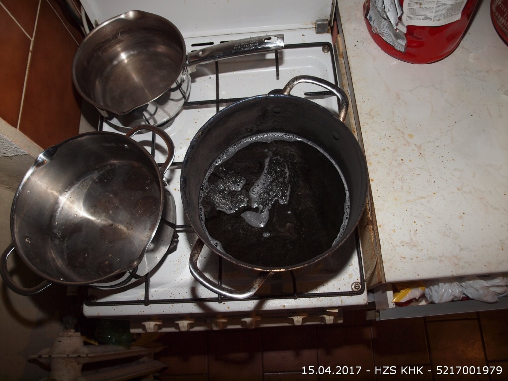 Obě jednotky královéhradeckých profesionálních hasičů z centrální stanice a stanice Pražská vyjely v sobotu 15. dubna 2017 v 19:26 hodin k hlášenému požáru bytu v ulici Labská kotlina v Hradci Králové. Po nouzovém otevření dveří hasiči zjistili, že se uvnitř bytu nikdo nenachází a na zapnutém sporáku hoří maso. Prostor kuchyně a obývacího pokoje byl poškozen zplodinami hoření a došlo k poškození kuchyňské linky. Hasiči po vypnutí sporáku odvětrali celý byt. Hmotná škoda byla předběžně vyčíslena na 20 tisíc korun, uchráněné hodnoty činí 500 tisíc korun. Při požáru nebyl nikdo zraněn. (foto: centrální stanice Hradec Králové)