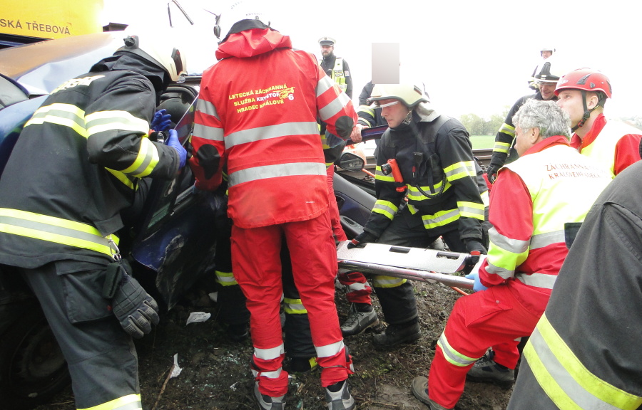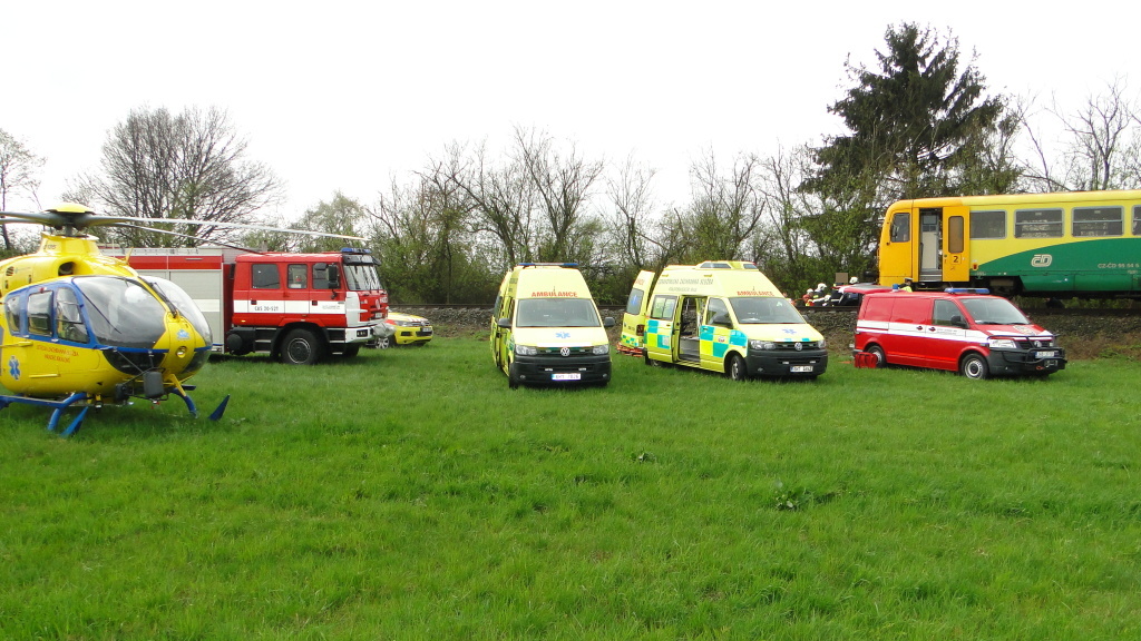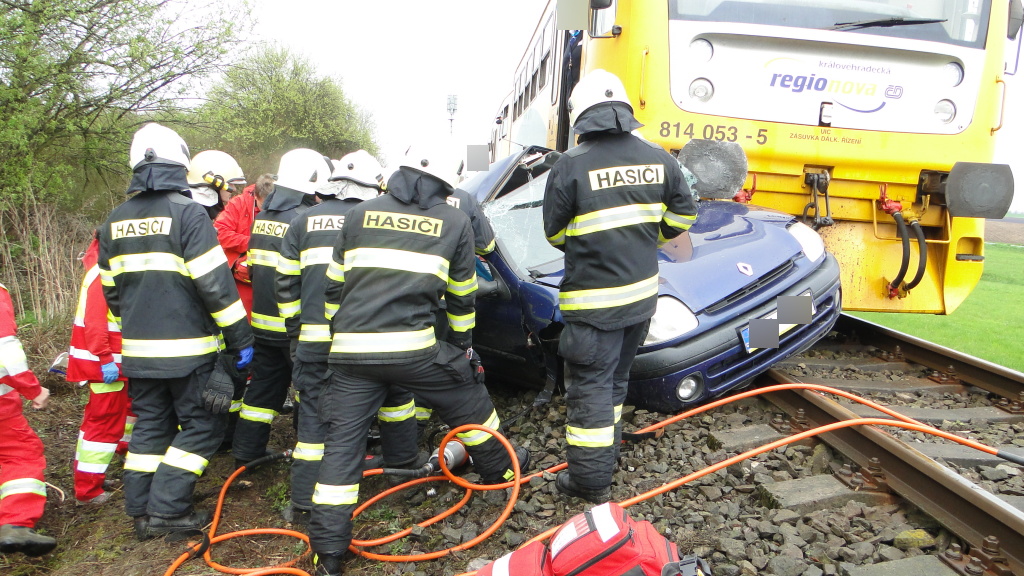 K nehodě na železničním přejezdu došlo v pondělí 17. dubna 2017 dopoledne na nechráněném železničním přejezdu u Všestar směrem na Střezetice. Řidič vozidla Renault Clio z dosud nejasných příčin vjel na přejezd právě ve chvíli, kdy tudy projížděl osobní vlak. I přes rychlou reakci strojvedoucího vlak po srážce tlačil vozidlo ještě zhruba 70 metrů po kolejích než zastavil. V osobním autě cestovali tři lidé, kteří byli zraněni. Z cestujících ve vlaku nebyl nikdo zraněn. Na místo události vyjeli v 09:45 hodin profesionální hasiči z Hradce Králové – stanice Pražská, centrální stanice Hradec Králové, hasiči HZS podniku Správy železniční dopravní cesty Nymburk a dobrovolní hasiči z Chlumu (Všestary). Řidič a spolujezdkyně z předního sedadla zůstali ve vraku auta zaklíněni a hasiči je museli postupně pomocí speciálního hydraulické nářadí vyprostit. Společně se spolujezdkyní ze zadního sedadla byli po vyproštění všechny zraněné osoby předány do péče lékařům a záchranářům pozemní a letecké záchranné služby. Řidič byl letecky transportován do nemocnice v Hradci Králové, kam byly sanitami převezeny i obě spolujezdkyně. Hasiči pomohli zhruba 20 cestujícím vystoupit z vlaku a doprovodili je k silnice, kde byla pro ně zajištěna náhradní autobusová doprava. Osobní vůz zajistili proti požáru a odpojili autobaterii. Příčiny nehody šetří Policie ČR a Drážní inspekce. (foto: stanice HK – Pražská)