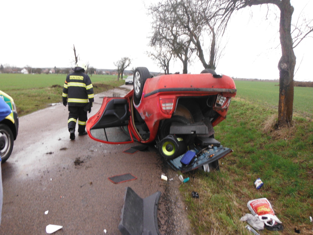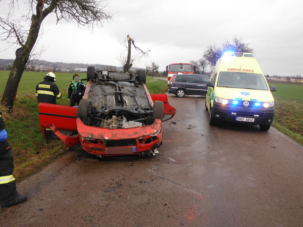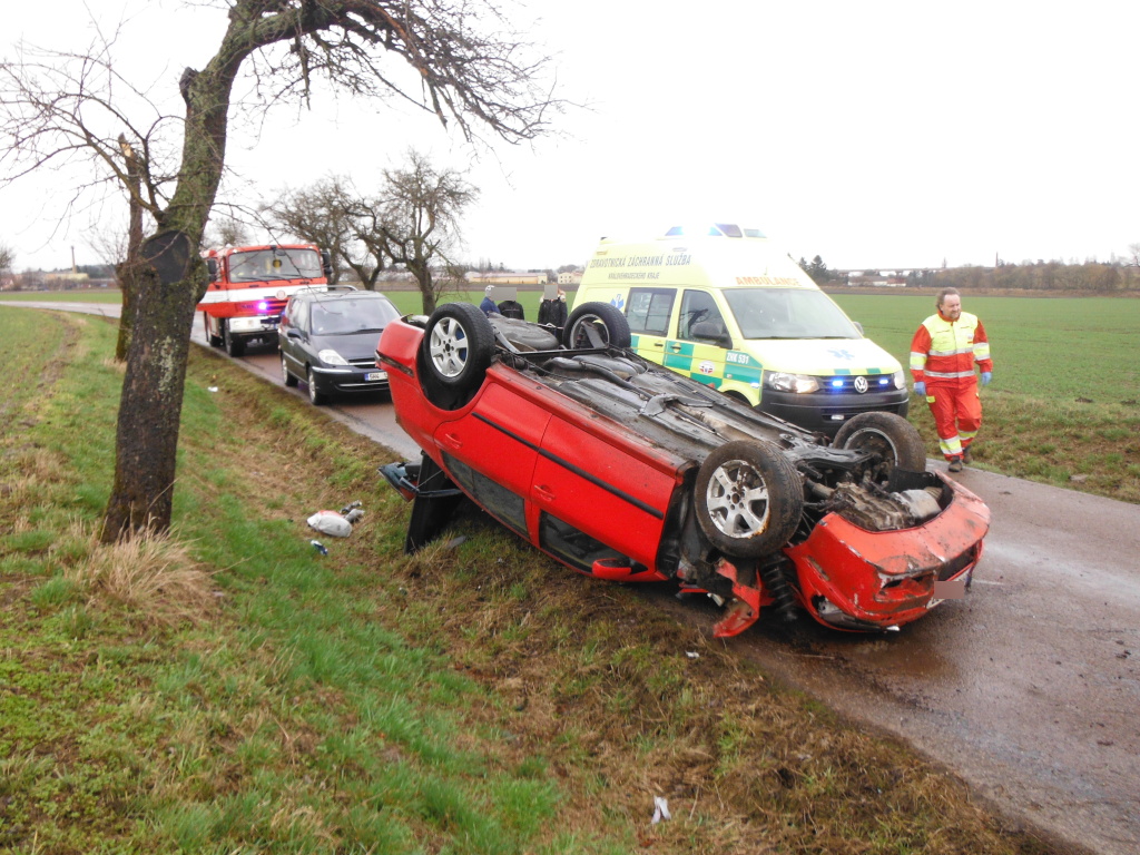 Jednotka profesionálních hasičů z Hořic byla v 15:13 hodin přivolána k dopravní nehodě osobního vozidla na silnici třetí třídy mezi Hořicemi a Dobrou Vodou. Osobní vůz skončil na střeše na silnici. Jedna osoba byla zraněna a převezena záchrannou službou do nemocnice. Hasiči převrátili vůz zpět na kola, zajistili ho proti požáru a pomohli s odtažením mimo komunikaci. Příčiny nehody šetří Policie ČR. (foto: stanice Hořice)