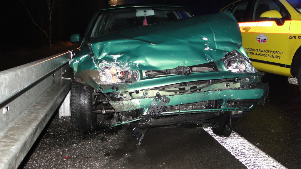 K dopravní nehodě došlo v neděli večer na hlavní silnici č. I/35 mezi Hradcem Králové a Hořicemi. U obce Lípa se střetla dvě osobní vozidla. Na místo události vyjeli ve 20:45 hodin profesionální hasiči z Hradce Králové – stanice Pražská a hasiči HZS podniku Čepro Cerekvice. Po srážce zůstala jedna osoba zaklíněná uvnitř vozidla. Hasiči ji vyprostili a předali do péče záchranné služby. Poté zajistili obě vozidla proti požáru a úniku provozních kapalin. Příčiny nehody šetří Policie ČR. (foto: stanice HK – Pražská)