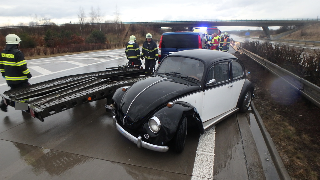 K dopravní nehodě dodávky s přívěsem došlo v sobotu po 17. hodině na dálnici D11. Na místo události vyjeli profesionální hasiči z Nového Bydžova a dobrovolní hasiči z Chlumce nad Cidlinou. Nedaleko dálničního sjezdu na Olešnici došlo k nehodě dodávky převážející osobní vůz na přívěsu. Z dosud nejasných příčin řidič narazil do středových vozidel. Převážený automobil poté spadl z přívěsu na vozovku. Nehoda se obešla bez zranění a úniku provozních kapalin. Hasiči zkontrolovali dodávku a zajistili ji proti požáru. Příčiny nehody šetří Policie ČR. (foto: stanice Nový Bydžov)