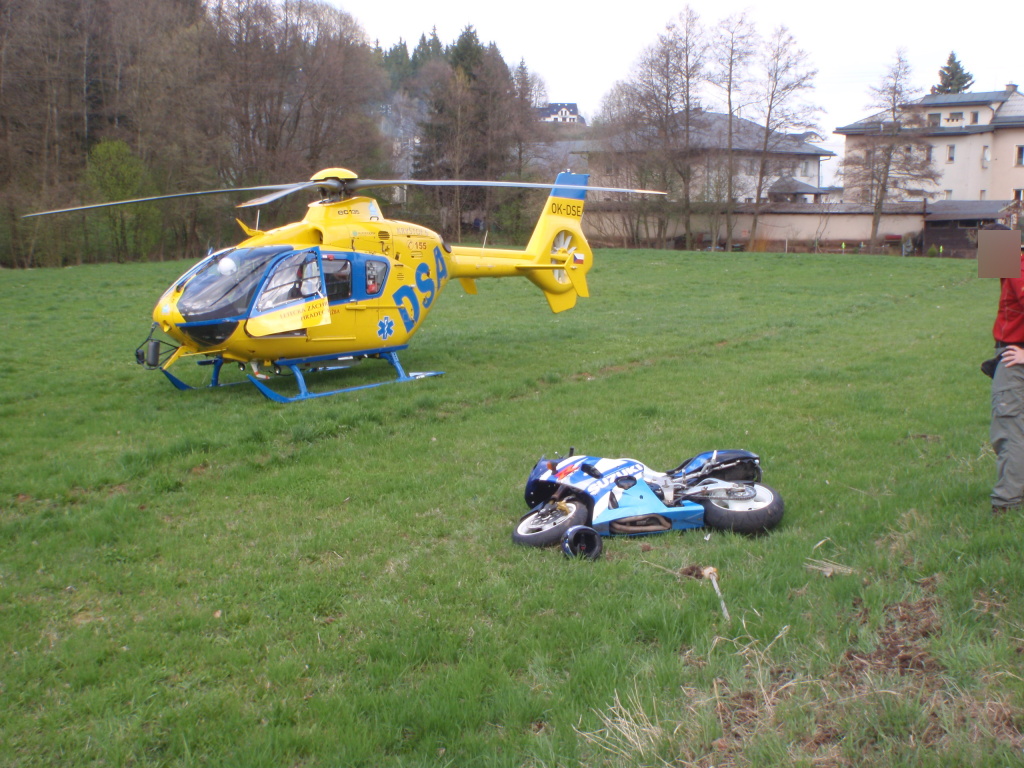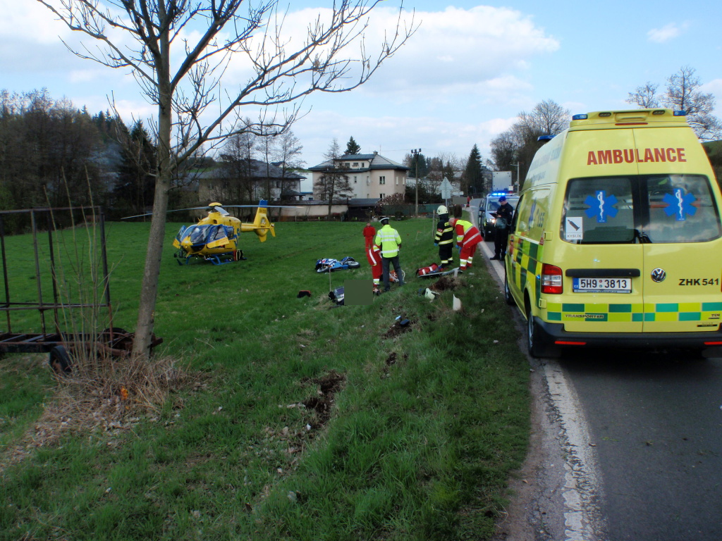 K tragické dopravní nehodě motorkáře došlo v neděli odpoledne v obci Dolní Kalná. Na místo události vyjeli v 16:03 hodin profesionální hasiči z Nové Paky, dále posádky pozemní a letecké záchranné služby a Policie ČR. Muž na motocyklu z dosud nejasných příčin vyjel ze silnice a narazil do dopravní značky. Ještě před příjezdem záchranných složek se snažili těžce zraněnému motorkáři pomoci kolemjedoucí řidiči, kteří prováděli resuscitaci. V oživovacích pokusech pokračovali lékaři a záchranáři za asistence hasičů. Resuscitace byla neúspěšná a lékař konstatoval smrt. Hasiči zabezpečili motocykl proti požáru a odpojili baterii. Příčiny a okolnosti nehody šetří Policie ČR. (foto: stanice Nová Paka)