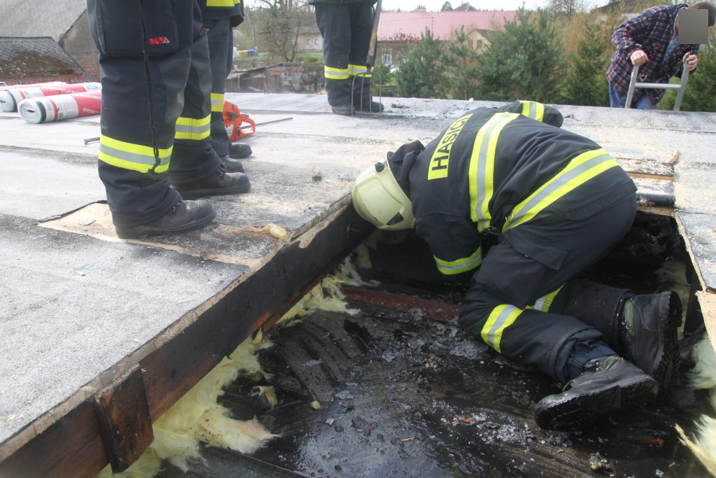 Čtyři jednotky hasičů zasahovaly v neděli před polednem u požáru střechy unimobuňky v Malé Čermné. Událost byla na operační středisko HZS Královéhradeckého kraje ohlášena v 11:31 hodin. Na místo vyjeli profesionální hasiči z Rychnova nad Kněžnou, dobrovolní hasiči z Borohrádku, Kostelce nad Orlicí a Čermné nad Orlicí. Při příjezdu první jednotky byl požár již lokalizován. Hasiči museli rozkrýt střešní konstrukci a dohasit ohniska v podhledu. Poté vyndali poškozenou skelnou vatu zpod střechy. Požár uhasili ve 12:25 hodin. Hmotná škoda byla předběžně vyčíslena na pět tisíc korun. Při požáru nebyl nikdo zraněn. Příčiny a okolnosti vzniku požáru jsou předmětem dalšího šetření. (foto: stanice Rychnov nad Kněžnou)