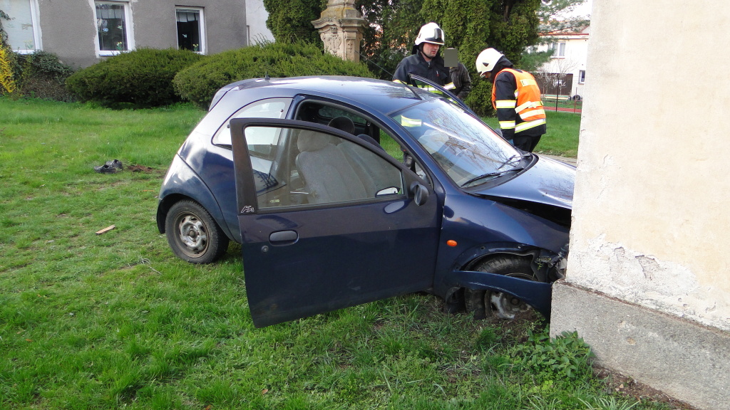 V neděli 9. dubna 2017 v 18:37 hodin vyjeli profesionální hasiči z Hradce Králové – stanice Pražská k dopravní nehodě, která se stala ve Stěžerách. Osobní vůz zn. Ford Ka z dosud nejasných příčin vyjel ze silnice, prorazil živý plot a narazil do zdi místního kostela. Hasiči po příjezdu na místo poskytli zraněnému řidiči předlékařskou pomoc a po příjezdu záchranářů ho předali do jejich péče. Osobní vůz zajistili proti požáru a odpojili autobaterii. Příčiny nehody šetří Policie ČR. (foto: stanice Hradec Králové – Pražská)