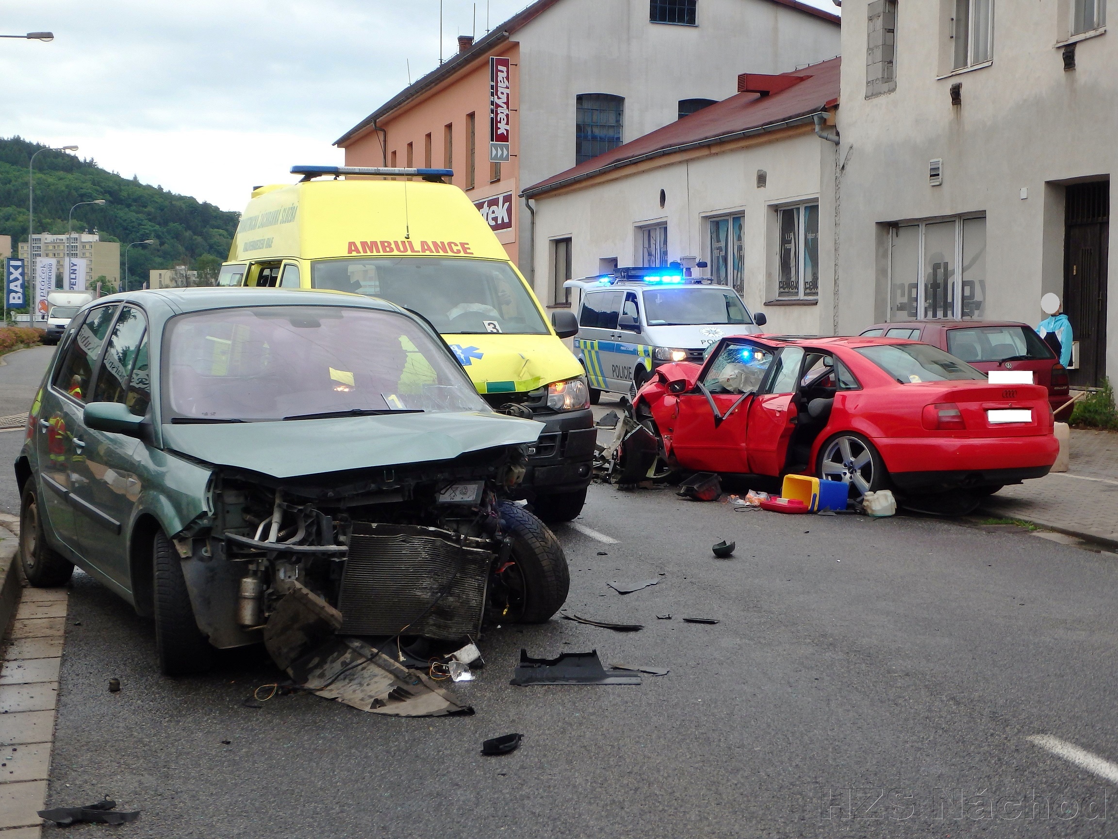 Náchodští profesionální hasiči zasahovali v sobotu odpoledne (ohlášeno 17:22) v ulici Kladská, kde došlo ke střetu dvou osobních automobilů. Hasiči museli dvě zraněné osoby z vozidla vyprostit pomocí hydraulického nářadí. Jeden těžce zraněný byl transportován vrtulníkem letecké záchranné služby do nemocnice, druhý zraněný byl převezen do nemocnice sanitou. Jednotka provedla úklid vozovky. Komunikace byla po více než hodině zprůjezdněna.