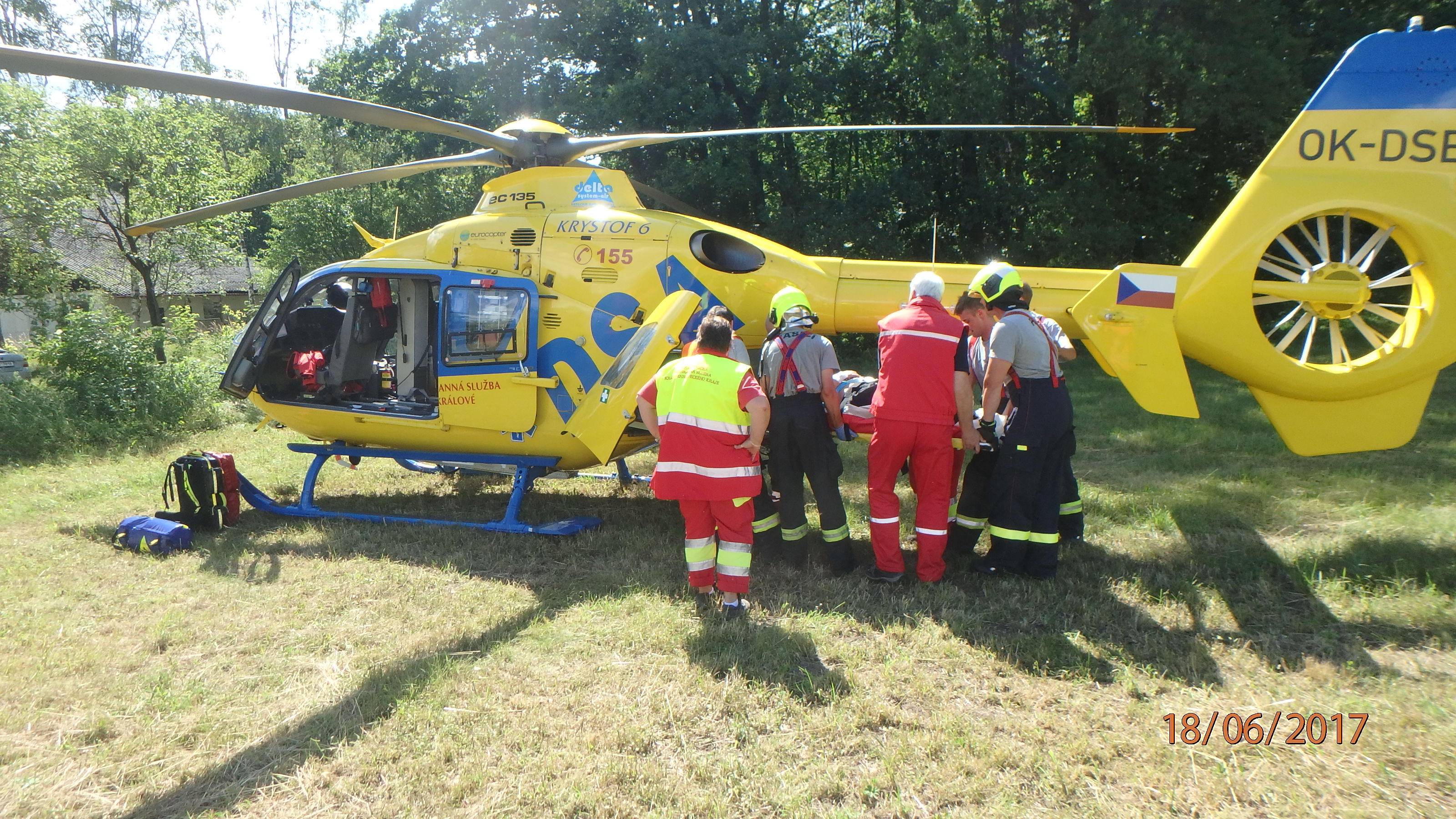Rychnovští profesionální hasiči a dobrovolní hasiči z Týniště nad Orlicí byli v neděli v 15:06 přivoláni k pádu osoby do výkopu u chaty v Rašovicích. Hasiči ve spolupráci se zdravotnickou záchrannou službou uložili ženu na páteřní desku a vytáhli ji ven. Poté ji přeložili na nosítka a transportovali k vrtulníku letecké záchranné služby, který ji dopravil do fakultní nemocnice.