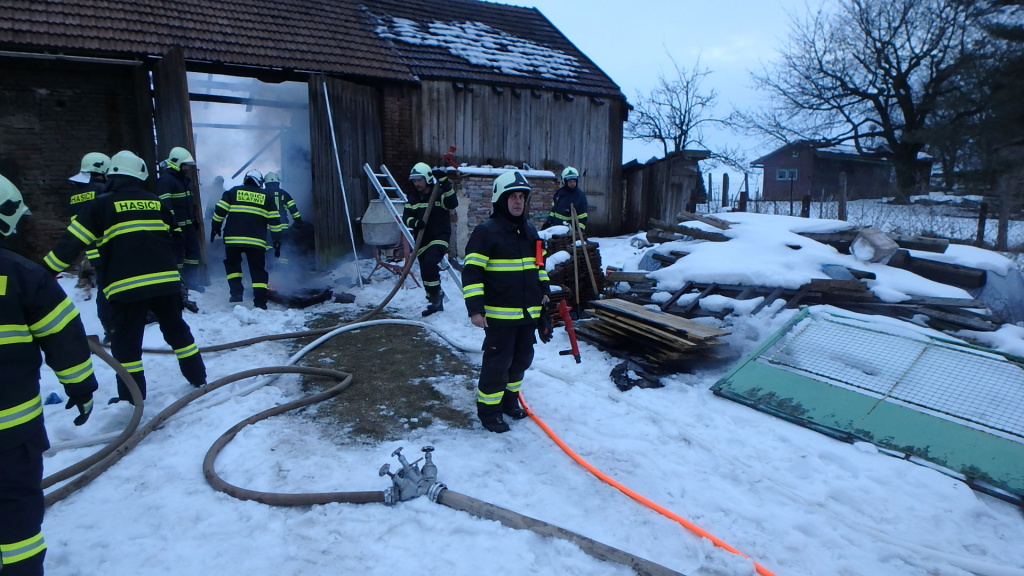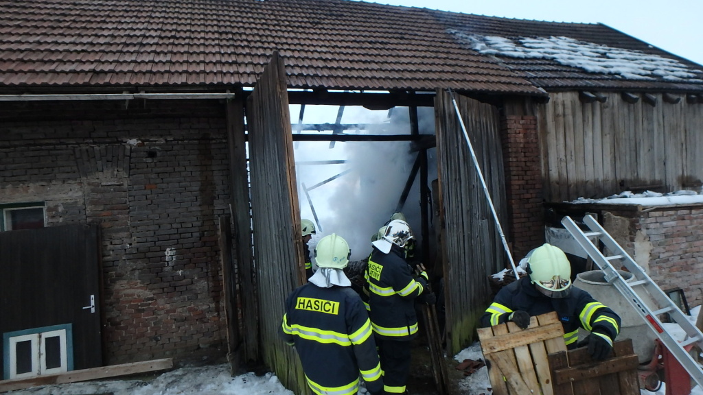 Požár vypukl ve stodole, která byla součástí rodinného domu. Ten procházel postupnou přestavbou a rekonstrukcí a nebyl trvale obývaný. V prostoru, kde došlo k požáru byly uskladněny věci majitele domu, stavební materiál a různé nářadí. Hasiči dostali požár pod kontrolu v 16:33 hodin a zlikvidovali v 19:23 hodin. Oheň zničil vazbu stodoly a uskladněné věci. Hmotná škoda byla předběžně odhadnuta na 100 tisíc korun, uchráněné hodnoty činí 220 tisíc korun. Příčiny vzniku požáru jsou předmětem šetření. Při požáru ani samotném zásahu nebyl nikdo zraněn. (foto: stanice Nový Bydžov)