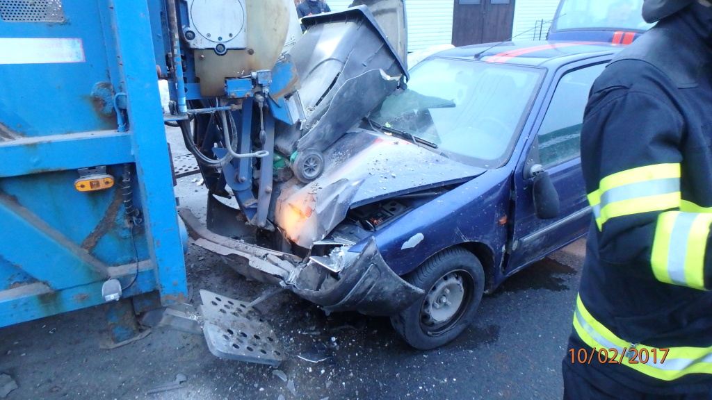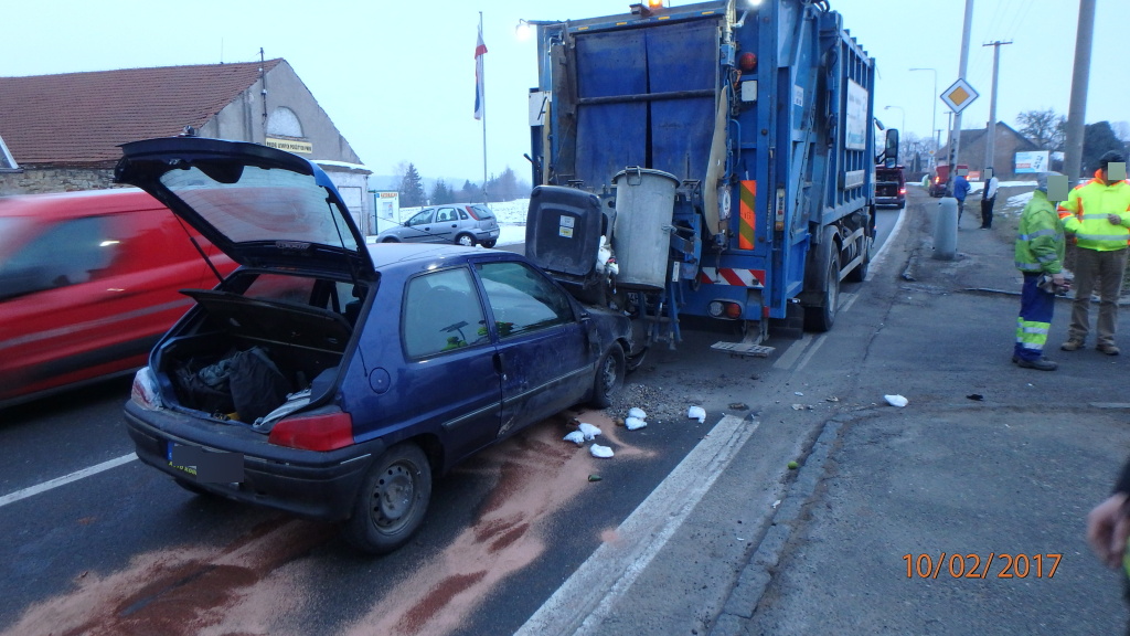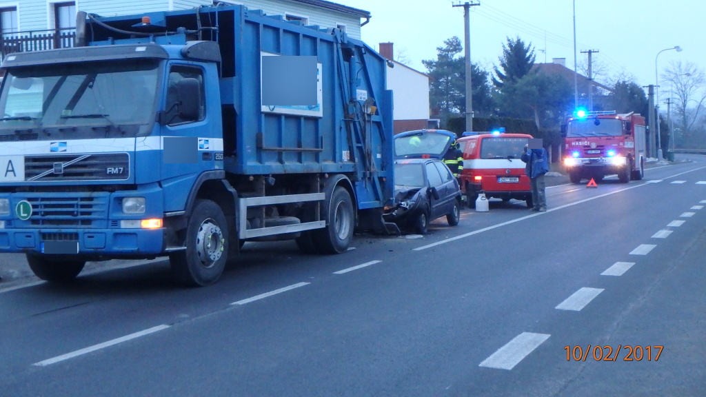 Řidič osobního auta narazil do nákladního na svoz odpadu