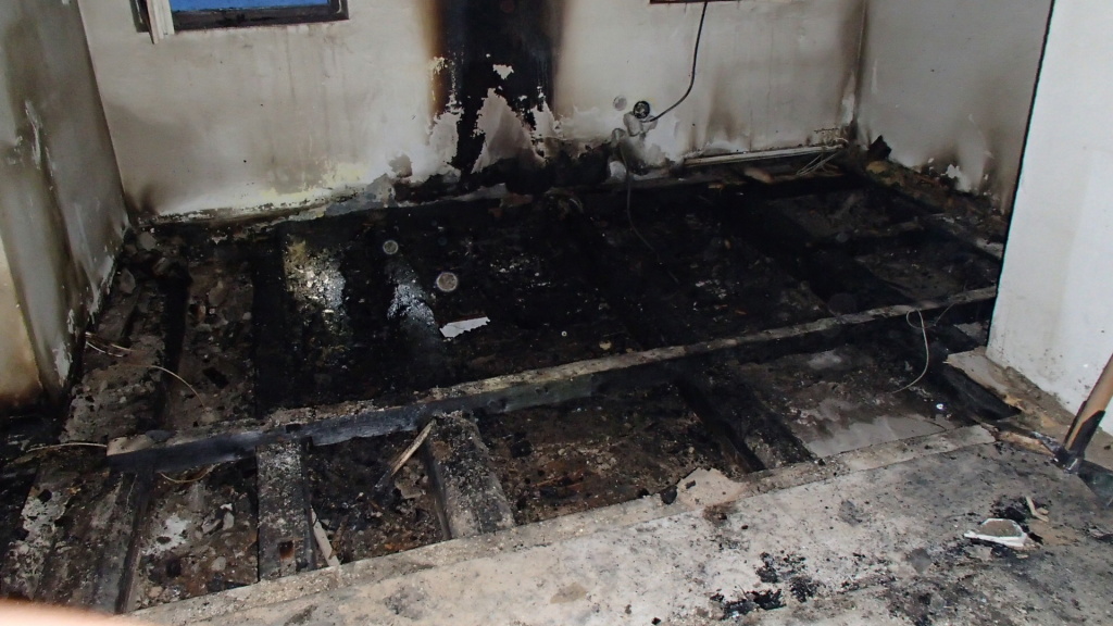 Po příjezdu na místo bylo zjištěno, že hoří v jednom z pokojů ve třetím nadzemním podlaží. V době požáru se v hotelu nacházelo 40 dětí, pět vedoucích a personál, které hasiči evakuovali do restaurace v prvním nadzemním podlaží. Hasiči uhasili požár jedním vysokotlakým vodním proudem. Následně pomocí motorových pil museli odstranit část poškozené podlahy a přetlakovou ventilací odvětrat zakouřené prostory. Šetřením na místě bylo zjištěno, že požár vznik od akumulačních kamen. Oheň se rozšířil na polovinu dřevěné podlahy pokoje a zasáhl také stropní konstrukci pokoje o patro níž. Došlo ke zničení lůžkovin a poškození elektroinstalace, koberce a malby místnosti. Hmotná škoda byla předběžně odhadnuta na 500 tisíc korun. Při požáru nebyl nikdo zraněn. (foto: stanice Trutnov)
