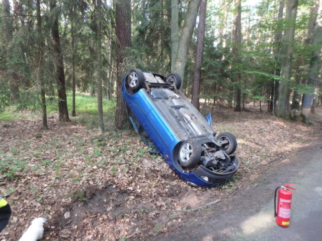 U dopravní nehody osobního vozidla, které skončilo mimo komunikaci v příkopu na střeše, zasahovali profesionální hasiči z Rychnova nad Kněžnou a dobrovolná jednotka z Týniště nad Orlicí. Při nehodě nebyl nikdo zraněn. Hasiči zajistili místo události a následně převrátili vůz zpět na kola. Místo zásahu si převzali policisté.