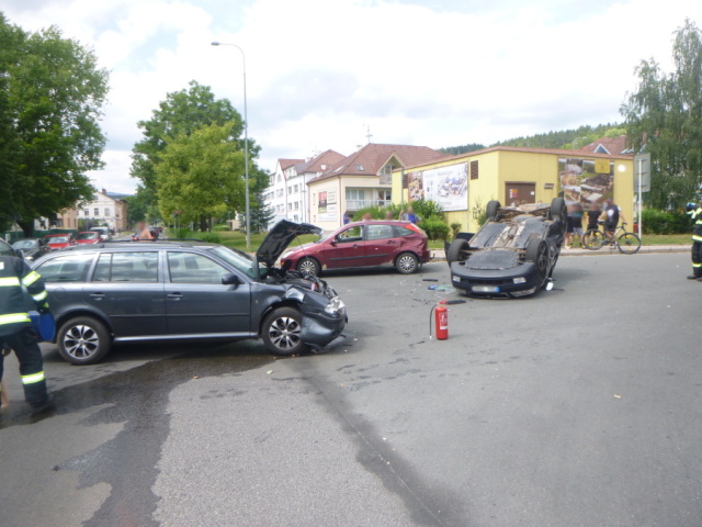 Na křižovatce ulic Horská a Kopretinová došlo k dopravní nehodě tří osobních vozidel. Na místě události zasahovali profesionální hasiči ze stanice Trutnov a dobrovolná jednotka Radvanice. Jeden z automobilů skončil po nehodě převrácený na střechu. Při nehodě byly čtyři osoby zraněny, do péče si je převzali záchranáři. Hasiči zajistili místo události, uniklé provozní kapaliny zasypali sorbentem a odklidili vozidla mimo komunikaci tak, aby nebránila provozu. Po odstranění následků nehody se hasiči vrátili zpět na základnu.
