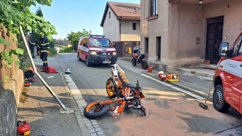 K dopravní nehodě motocyklu vyjížděla do Pilníkova profesionální jednotka hasičů z Trutnova. Řidička skončila v péči ZZS. Hasiči zajistili místo události a prohlédli motorku, zda z ní neunikají provozní náplně.