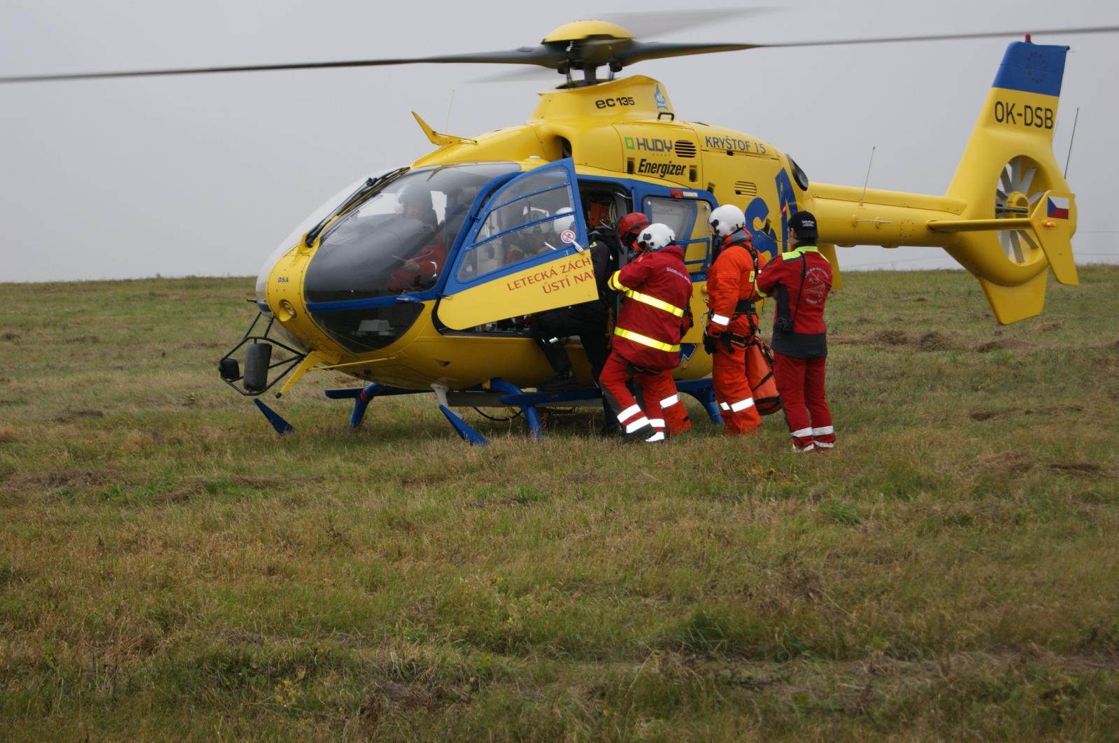 Zraněný člověk byl ze skal transportován v podvěsu pod vrtulníkem