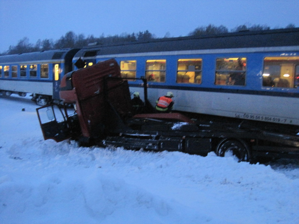 Pátek 13. ledna 2017   Hned o půl osmé ráno vyjeli profesionální hasiči z Trutnova a hasiči HZS podniku Správy železniční dopravní cesty Nymburk ke střetu osobního vozidla a vlaku na železničním přejezdu v Mírové ulici v Trutnově. Osobní vůz skončil po nárazu s poškozeným motorovým prostorem u přejezdu. Nehoda se obešla bez zranění. Hasiči pouze zabezpečili vozidlo proti požáru a odpojili autobaterii. K úniku provozních kapalin a pohonných hmot nedošlo. Příčiny a okolnosti nehody šetří Policie ČR a Drážní inspekce. (foto: stanice Trutnov)   V pátek v 08:38 hodin byli profesionální hasiči z Trutnova a dobrovolní hasiči z Hostinného přivoláni k záchraně koně, který spadl ze srázu v místní části Karlovka v Chotěvicích na Trutnovsku. Zvíře skončilo zraněné zhruba šest metrů pod srázem v potoce. Hasiči upevnili koně do popruhů a za využití traktoru místního občana ho vytáhli z potoka. Zraněné zvíře prohlédl přivolaný veterinář, který rozhodl o jeho utracení. (foto: stanice Trutnov)   K další železniční nehodě došlo v pátek odpoledne u obce Chotěvice na Trutnovsku. Na železničním přejezdu se střetl osobní vlak s nákladním vozidlem. I v tomto případě se nehoda obešla bez zranění. Na místo události vyjeli v 16:27 hodin profesionální hasiči z Trutnova, dobrovolní hasiči z Hostinného a hasiči HZS podniku Správy železniční dopravní cesty Nymburk. Ti po příjezdu na místo zkontrolovali řidiče nákladního auta, který vystoupil ještě před srážkou. Stejně tak strojvedoucí vlaku opustil kabinu ještě před nárazem. Ve vlaku cestovalo zhruba 25 lidí, kteří bezpečně vystoupili a náhradní autobusovou dopravu přejeli na nejbližší železniční stanici. Hasiči jímali a přečerpali zhruba 200 litrů nafty z poškozené nádrže nákladního automobilu. Královéhradečtí hasiči následně předali místo události drážním hasičům a vrátili se zpět na své základny. Po zadokumentování události byl nákladní vůz vyproštěn a odstraněn z profilu trati. (foto: stanice Trutnov)   Během pátečního dne hasiči také odklízeli sníh ze střech a vyprošťovali uvízlá vozidla. Profesionální hasiči z centrální stanice Hradec Králové odstraňovali sníh ze střechy budovy v Mánesově ulici v Hradci Králové.   Obě jednotky hradeckých profesionálních hasičů z centrální stanice a stanice Pražská vyjely v pátek v 15:21 hodin k dopravní nehodě dvou osobních vozidel a autobusu MHD v ulici Na Břehách v Hradci Králové. Po střetu vyjel autobus mimo vozovku, kde narazil do stromu. Hasiči po příjezdu na místo zkontrolovali zdravotní stav cestujících v autobusu a ve spolupráci se záchranáři pomohli s jejich ošetřením. Záchranná služba nakonec převezla tři osoby k dalšímu vyšetření do nemocnice. Hasiči odpojili u autobusu a jednoho z havarovaných vozidel autobaterie. Poškozený autobus si převzali pracovníci dopravního podniku, kteří zajistili jeho vyproštění specializovanou firmou. Příčiny nehody šetří Policie ČR. (foto: centrální stanice Hradec Králové)   Na Jičínsku jednotka profesionálních hasičů z Hořic pomáhala řidiči autobusu, který sjel do příkopu v Lukavci u Hořic. Kvůli množství sněhu zůstaly dveře autobusu zablokovány a šest cestujících i s řidičem se nemohli dostat ven. Hasiči odházeli sníh od dveří a pomohli všem bezpečně vystoupit. Nikdo z cestujících nebyl při nehodě zraněn. Z autobusu došlo z důvodu jeho náklonu k nepatrnému úniku pohonných hmot. Hasiči pomocí navijáku cisterny vyprostili vozidlo zpět na vozovku. (foto: stanice Hořice)   Profesionální hasiči z Nové Paky odklízeli strom z vozovky u obce Stav a jejich kolegové z Jičína vyprošťovali nákladní vůz ze sněhové závěje v Karlově u Staré Paky.   Plné ruce práce měli také hasiči na Náchodsku, kteří v pátek 13. ledna 2017 odklízeli stromy z komunikací v Broumovské ulici a v ulici Na Vyšehradě v Náchodě – Babí nebo Hořičkách. V části Zlíčko ve Vysoké Srbské spadl strom na osobní vozidlo. Při události nebyl nikdo zraněn. Na několika místech v okrese uvízly ve sněhu a sněhových závějích osobní a nákladní automobily. Hasiči pomáhali vyprošťovat kamiony u obce Jetřichov a Dolní Radechová, osobní vozy ve Žďárecké ulici ve Velkém Poříčí, Teplicích nad Metují, Slavíkově v Horní Radechové. Dobrovolní hasiči z Chvalkovic odstraňovali ledové rampouchy ze střechy místní základní školy. Profesionální hasiči z Náchoda vyjeli v 15:53 hodin k pádu střechy kůlny v Petrovicích. Plechová střecha se propadla zřejmě pod tíhou sněhu a zavalila šest vozidel. Hasiči provizorně stabilizovali a zabezpečili trosky kůlny a odtáhli jeden automobil zn. Tatra 603, který se nenacházel přímo pod zřízenou střechou. Po zajištění objektu a označení místa zřízení se hasiči vrátili zpět na základnu. Při zásahu nebyl nikdo zraněn.   Na Rychnovsku hasiči vyprošťovali posypový vůz, který uvízl v části Masty v Bílém Újezdu. Dále pomáhali dodávce z příkopu ve Sněžném a zapadlému kamionu v Bohdašíně.   Hasiči na Trutnovsku odklízeli stromy z vozovky v Adamově, odstraňovali rampouchy ze střechy základní školy v ulici 5. května ve Vrchlabí a vyprošťovali nákladní vozidlo v Peci pod Sněžkou.     por. Bc. Martina Žahourková tisková mluvčí HZS Královéhradeckého kraje