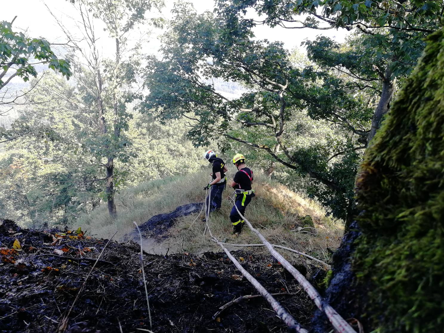 Událost byla na Krajské operační a informační středisko ohlášena v pátek v 19:35. Po příjezdu na místo bylo průzkumem zjištěno, že se jedná o plochu cca 20x30m. Hasiči k likvidaci požáru nasadili jeden vodní proud. Jelikož se místo zásahu nacházelo v nebezpečném místě, ve srázu, skalnatém terénu a blížící se tma by ohrožovala zasahující jednotky, byl zásah z bezpečnostních důvodů přerušen a pokračovalo se v sobotu v ranních hodinách. V tuto dobu byl již vyhlášen druhý stupeň požárního poplachu.