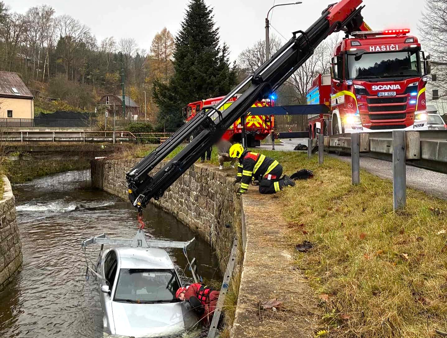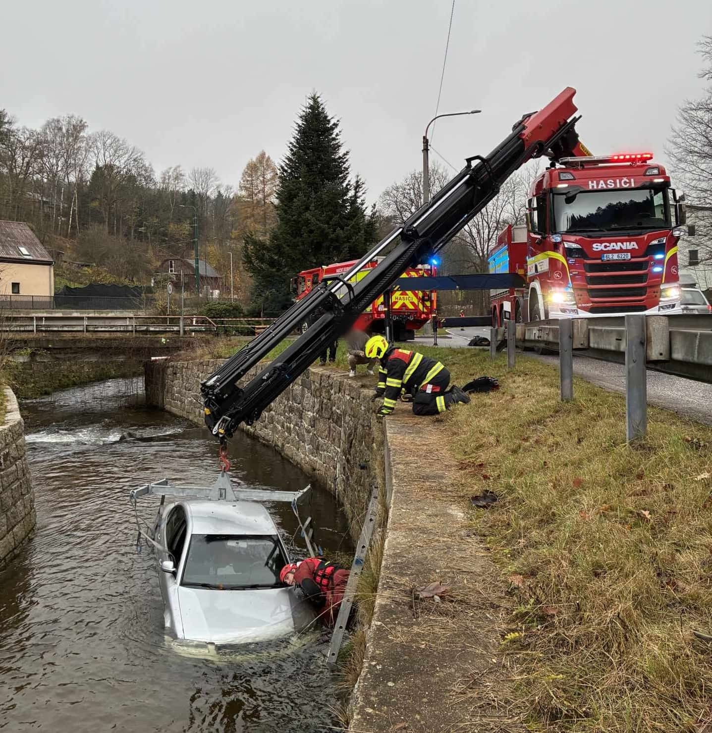 V úterý ráno zasahovali hasiči v Proseči nad Nisou u dopravní nehody, při které osobní auto skončilo v řece. Řidič naštěstí neutrpěl zranění. Vozidlo muselo být vytaženo vyprošťovacím automobilem, hasiči také zabezpečili únik provozních kapalin a řídili dopravu v místě zásahu.