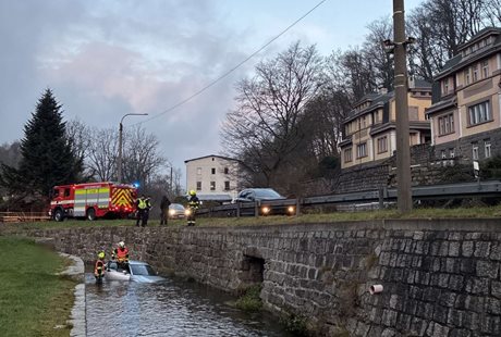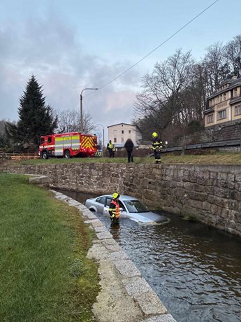 Auto skončilo v řece, hasiči ho museli vyprostit