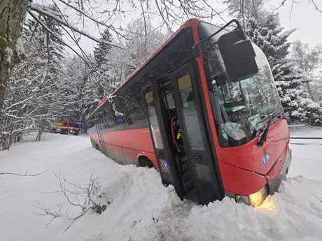 Ve středu 18. února 2026 zasahovali jablonečtí profesionální hasiči u dopravní nehody autobusu a osobního vozidla. Autobus skončil mimo komunikaci zabořený ve sněhu. Hasiči kvůli zledovatělé vozovce nasadili pásový obojživelník a zajistili bezpečný přesun dětí.