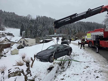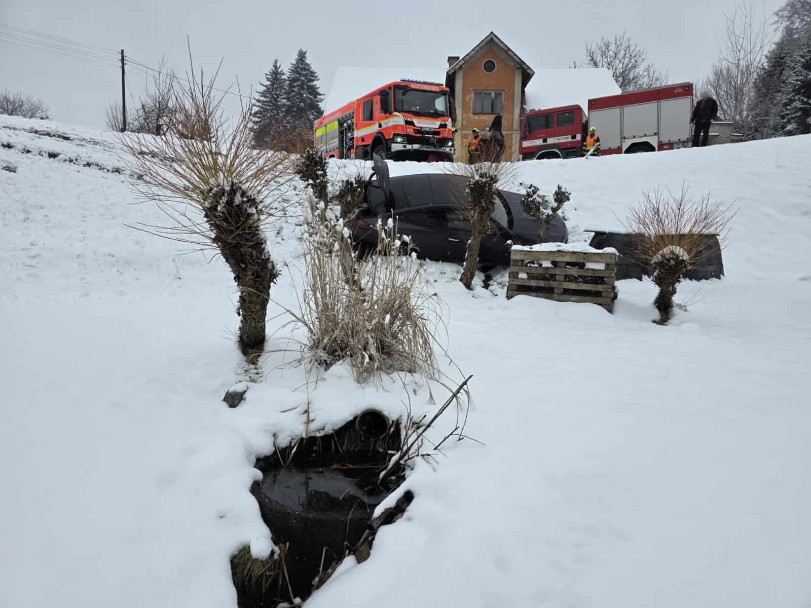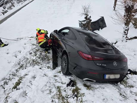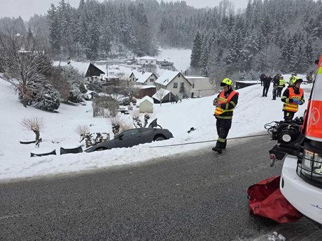 Na Jablonecku havaroval osobní automobil, který skončil mimo vozovku ve stráni. Pomoc přivolal systém eCall. Hasiči dorazili během několika minut a dvě osoby z vozidla bezpečně vyprostili bez zranění.