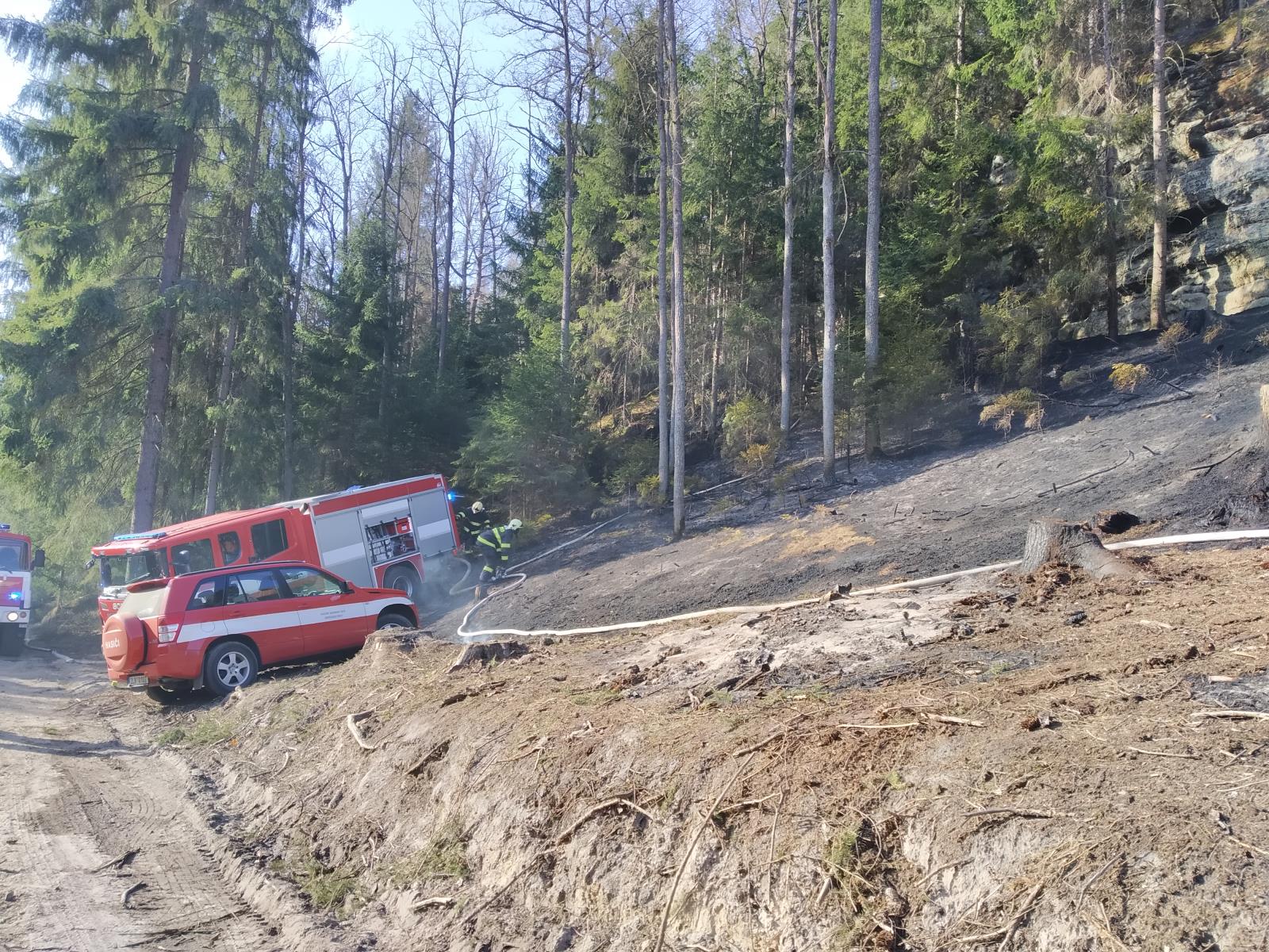 V odpoledních hodinách (13:17 hodin) Krajské operační a informační středisko převzalo ke zpracování událost požáru lesního porostu v obci Doksy – Staré Splavy na Českolipsku. V té chvíli se požár nacházel na rozloze cca 50 x 30 m. Při příjezdu jednotek na místo byl požár ve fázi plamenného hoření. Hasiči nejprve zasahovali s dvěma vodními proudy po obvodu požářiště s cílem zamezit šíření požáru. Na místě události se vyskytlo dalších 20 ohnisek o rozloze 1 x 2 m. Na likvidaci bylo nasazeno 5 vodních proudů. Pro dodávku vody na místo události byla zřízena kyvadlová doprava. Celkem na místě zasahovalo pět jednotek hasičů - profesionální jednotky ze stanice Česká Lípa a Doksy společně s JSDH obcí Dubá, Doksy I a Doksy II.
