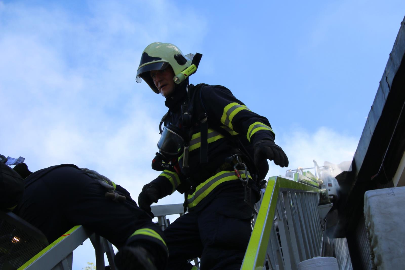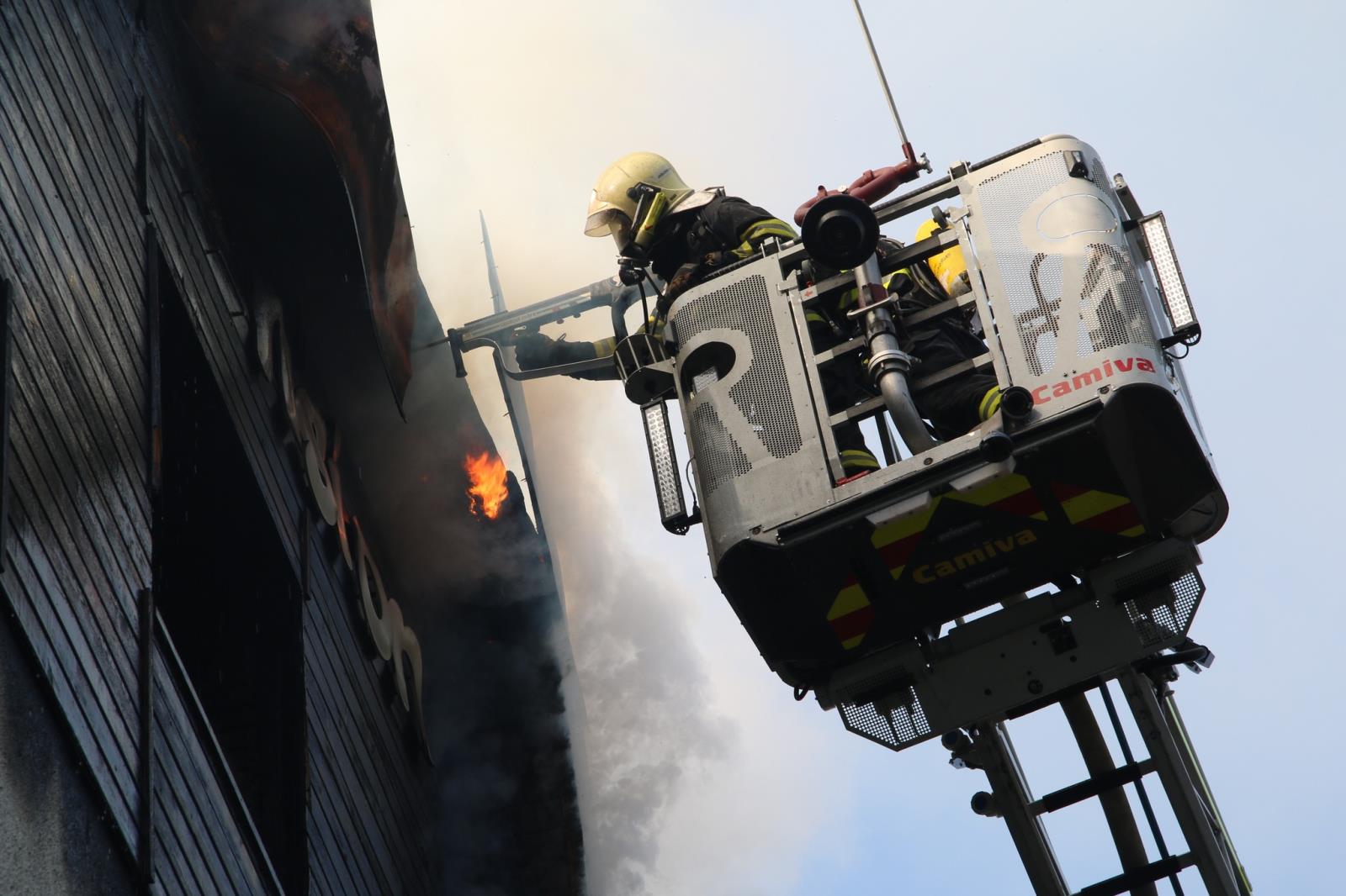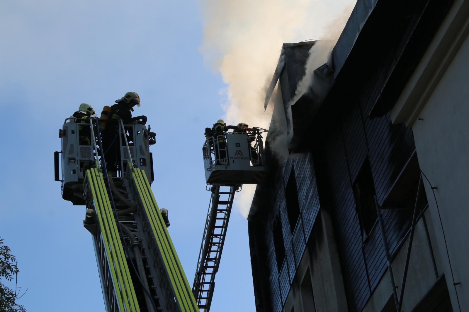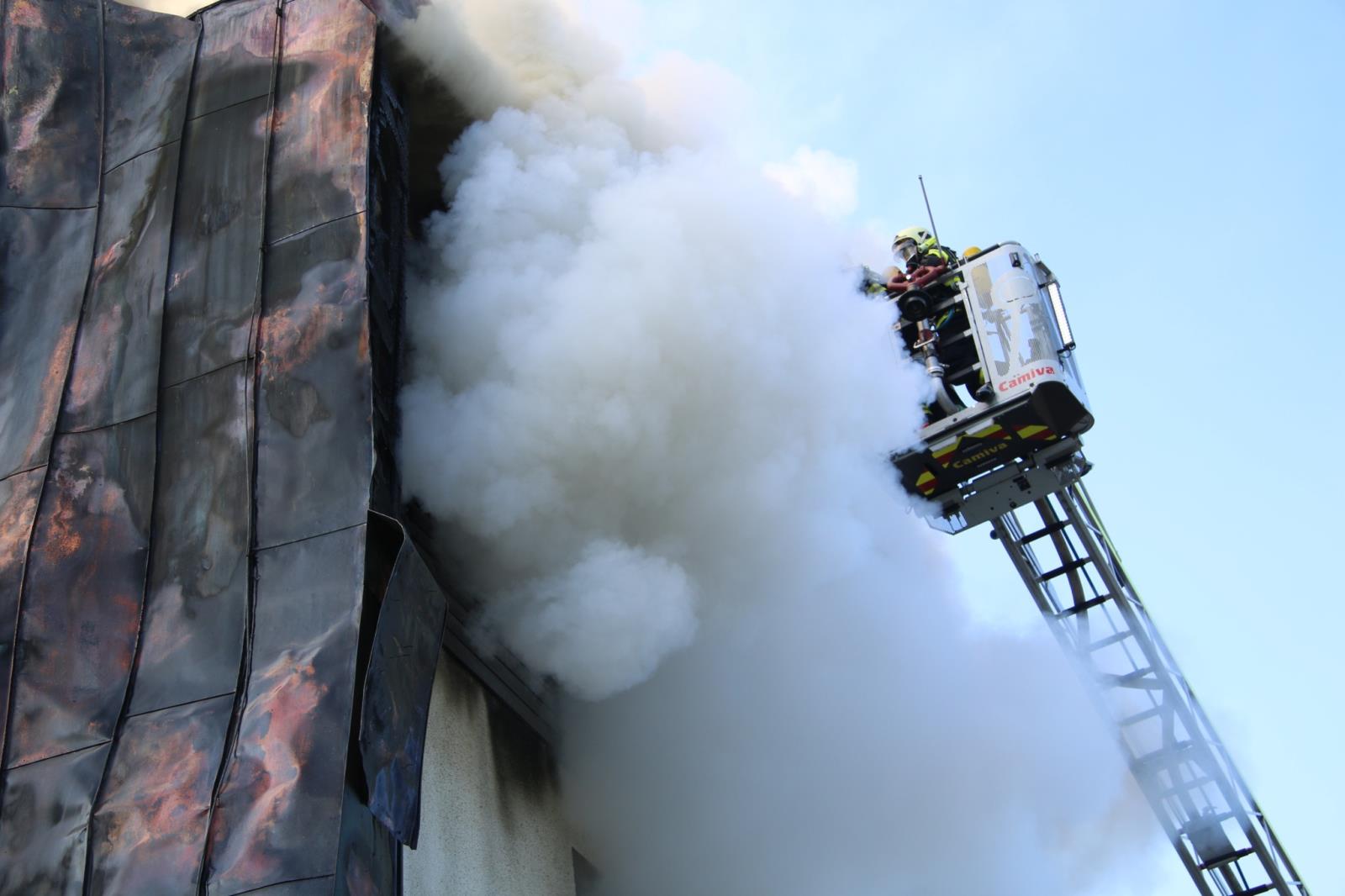 Při příjezdu prvních jednotek byl požár rozšířen do konstrukce celé střechy a některých částí pláště budovy. Velitel zásahu rozdělil místo zásahu na dva úseky a následně rozhodl o nasazení šesti proudů k likvidaci požáru. Použita byla z výškové techniky i lafetová proudnice.
