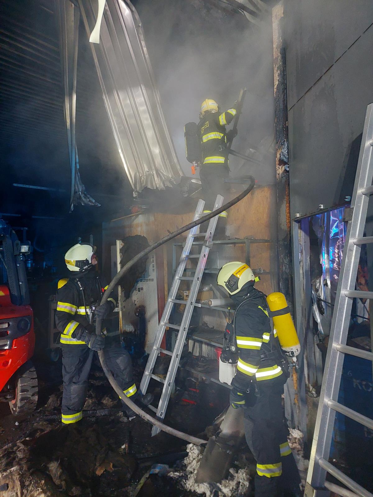 Zásah u požáru průmyslové haly v Oldřichově v Hájích