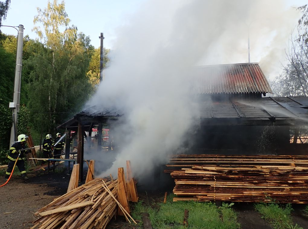 Hasiči bojovali s požárem pily v obci Desná