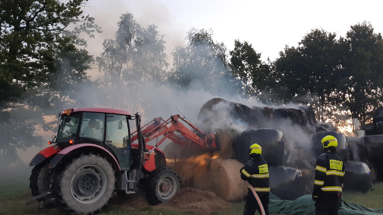 Hasiči likvidovali požár balíků trávy v Jindřichovicích pod Smrkem