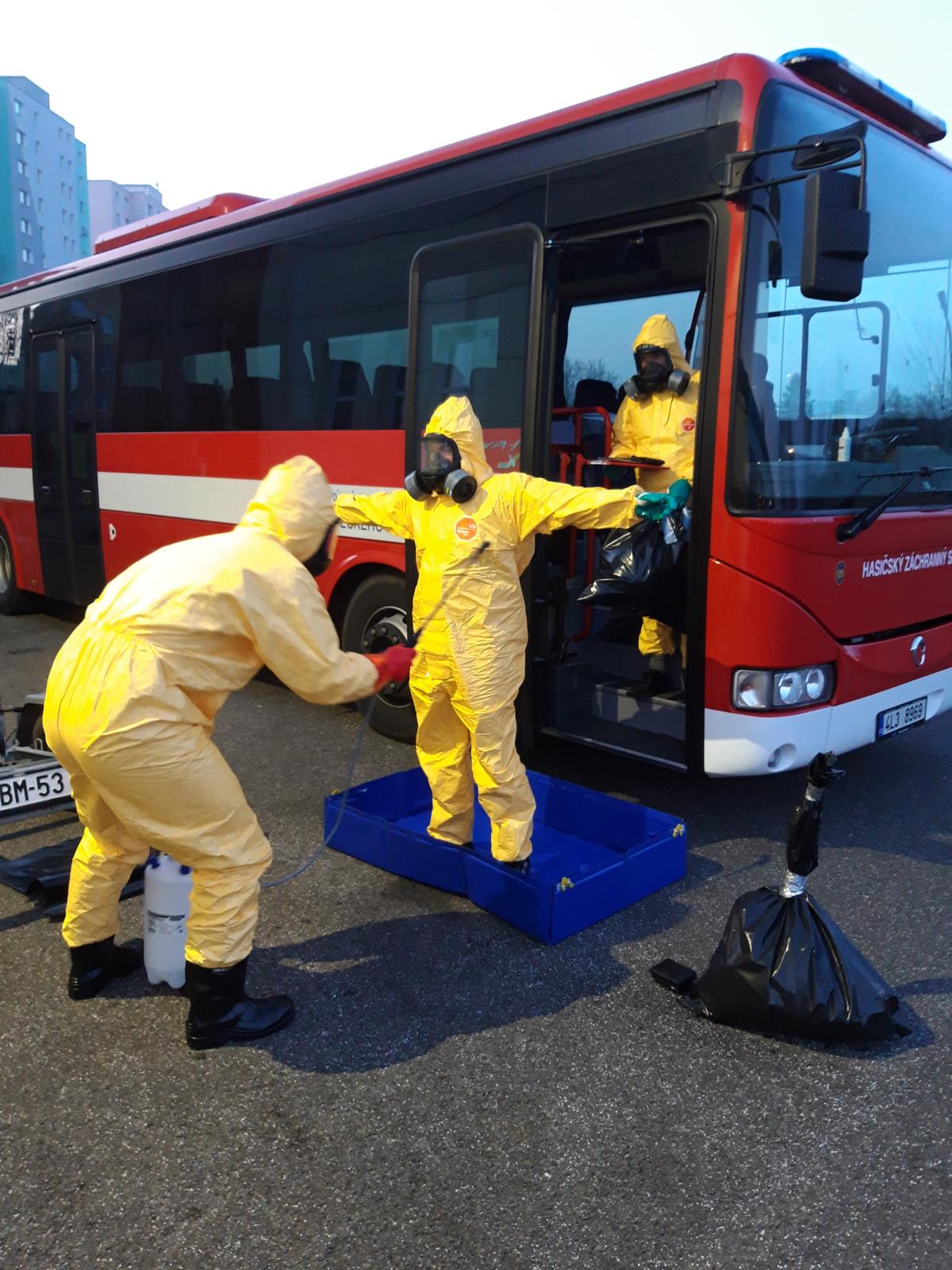 Na každou jízdu byli hasiči řádně vystrojeni ochrannými prostředky (jednorázový ochranný oblek, brýle, respirátory, ochranné masky, dezinfekce na ruce a povrchy autobusu), myslelo se samozřejmě také na české občany, pro které vezli řidiči roušky a dezinfekci.