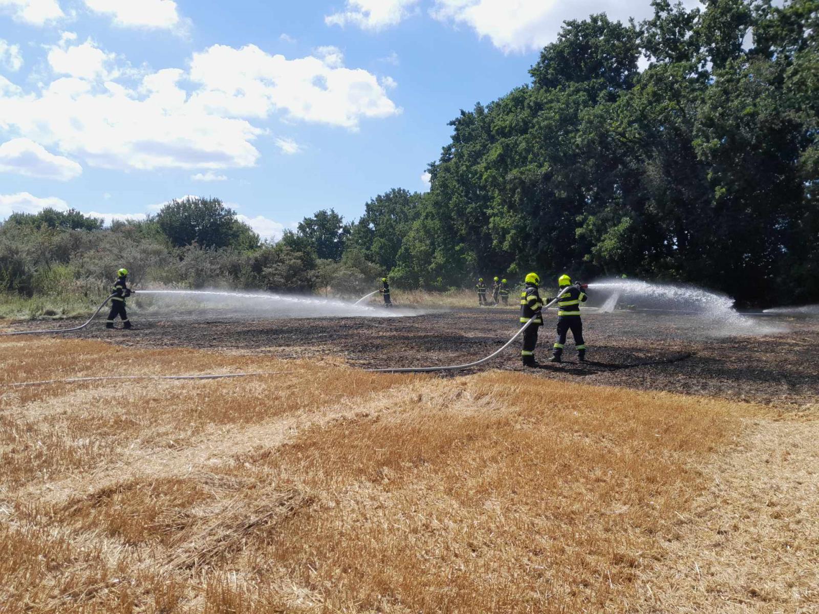Operační středisko informaci o události přijalo přibližně v 12:30. Po příjezdu hasiči provedli průzkum a zjistili, že hořící strniště má rozměry přibližně 40 × 40 metrů. K lokalizaci požáru použili čtyři proudy – dva vysokotlaké a dva C proudy.