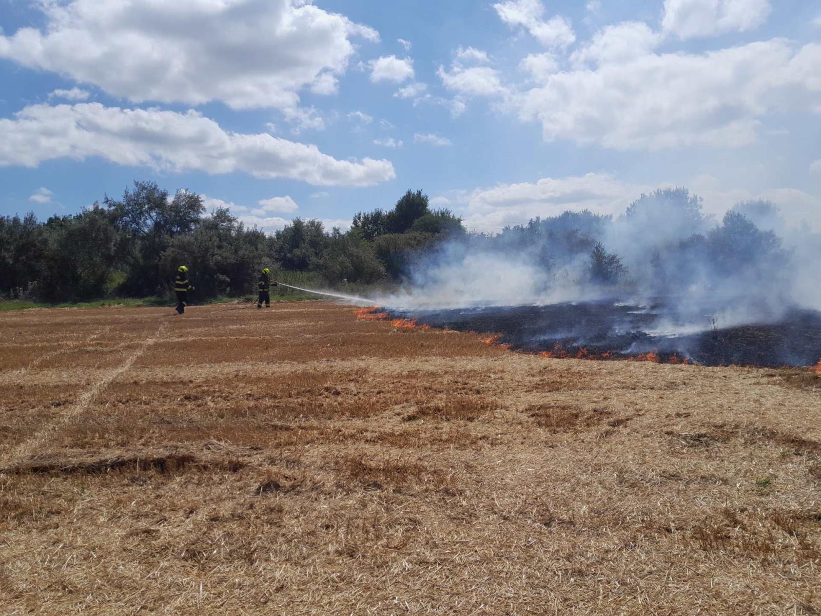 Hasiči rychle uhasili požár strniště v Přepeřích u Turnova