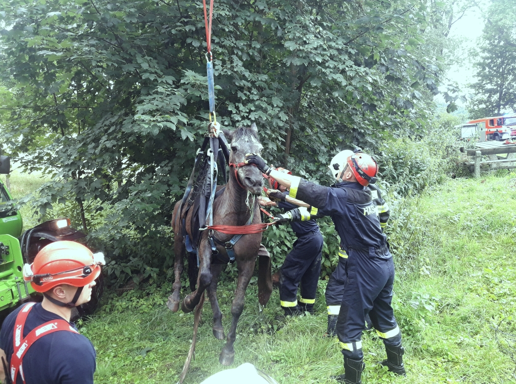 V době příjezdu záchranářů ležela kobyla na levém boku v bahně. Pomocí upínacích popruhů, lanových technik, záchranné sítě a...